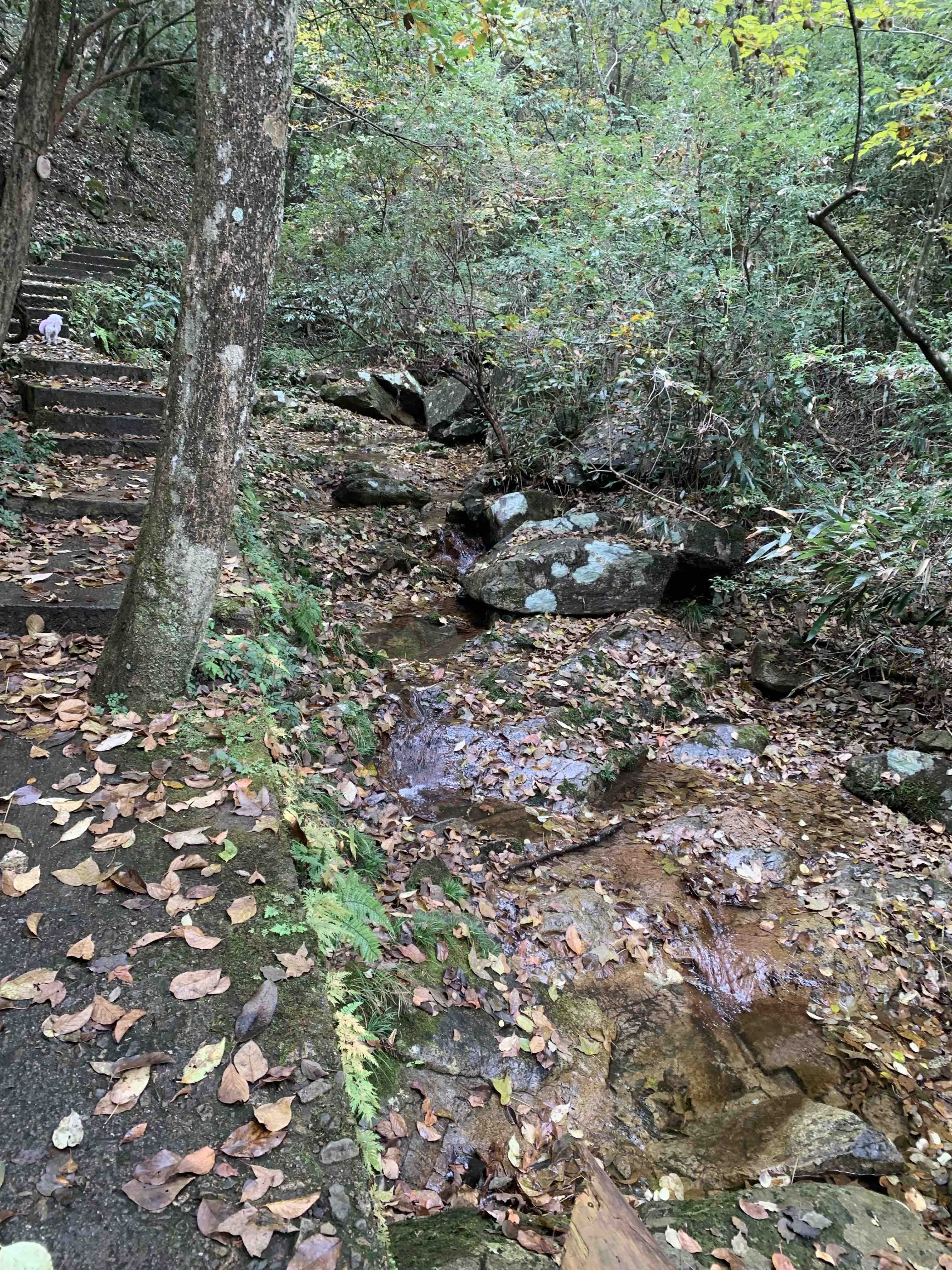 过了莲花塘,只找到一条下行的山路,很是陡峭,溪流落差也很大,真是风景险中求。古道、飞瀑,遮天蔽日的大树,很治愈,也还是有点累的。