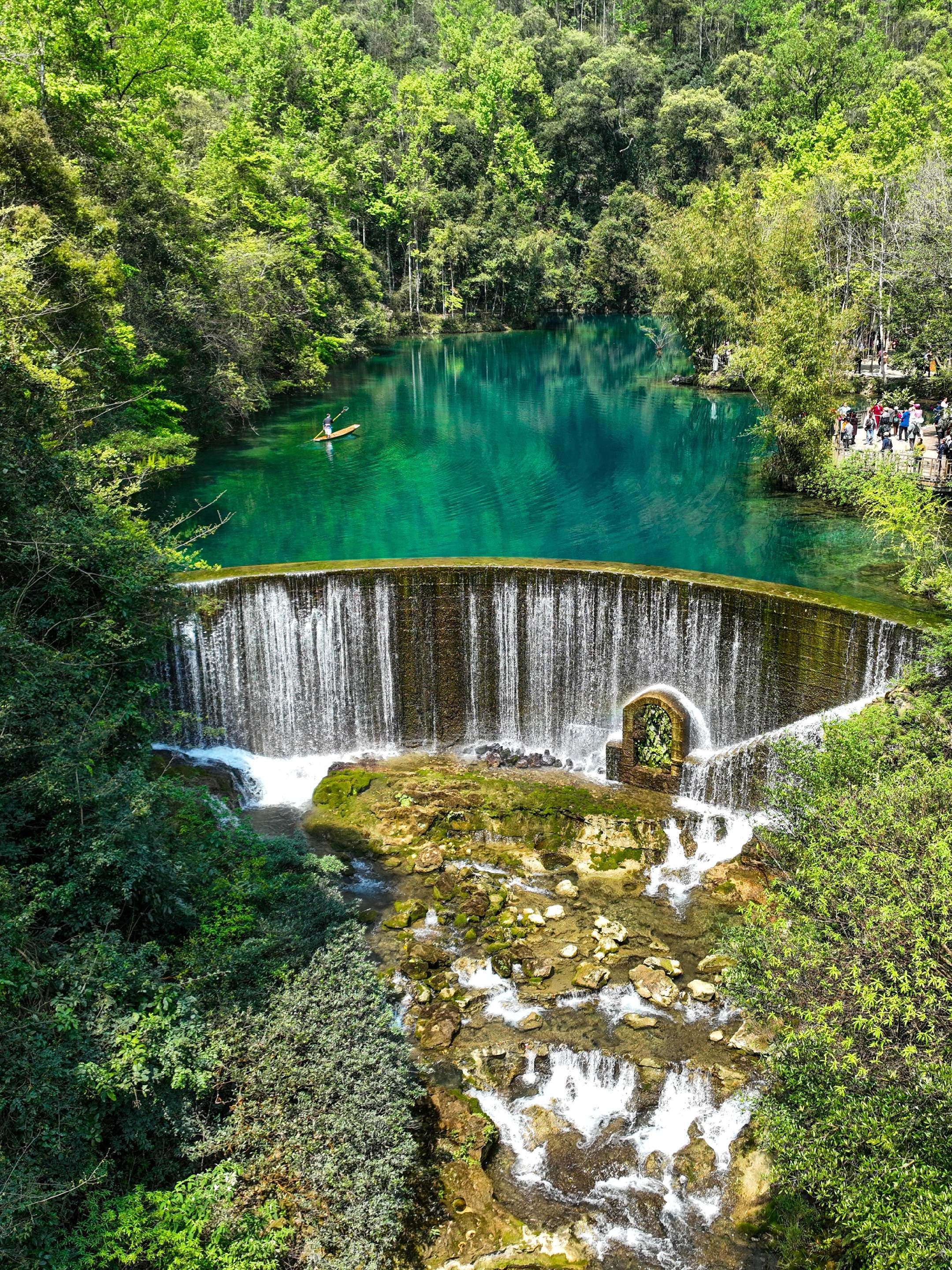 黔南必去的神仙景点!130元通票(含观光车)超值~漫步百年小七孔古桥,听潺潺流水诉说岁月;68级跌水瀑布如白练倾泻,水雾中还能偶遇彩虹;鸳鸯湖划竹筏,穿梭在茂密丛林间,仿佛闯入童话秘境!