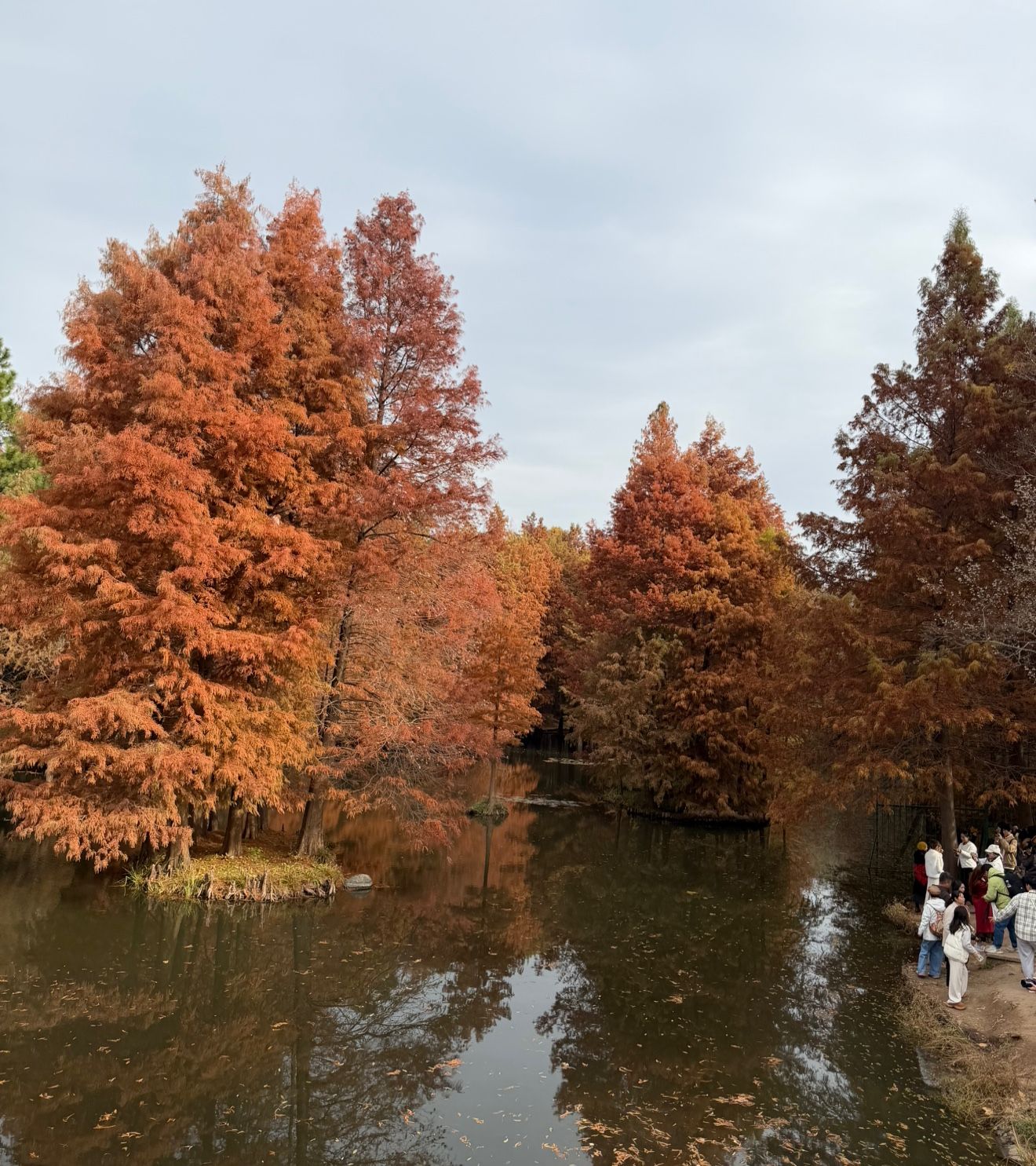 赏枫以后,你一定会觉得,如此美景,很难再有景色与此媲美了,这就是你对南京不了解的地方。深秋初冬的南京,还有一个观赏点是在钟山风景区内,名曰燕雀湖,湖不大,据说古时与玄武湖齐名,传说因燕雀护宝而得名,明朝时大部分被填,现如今的景色似乎与燕雀关系不大,而与水杉有关,其中以落羽杉更有人气。明净的湖水,铁锈色的杉树,水中的倒影,在金色的阳光下,迷倒了无数个前来观赏的人群,当你站在湖边看向对面杉树林,望着水中倒影,千姿百态,分外妖娆。此时此景,你会感到此景只有天上有,不知何时落人间之感。