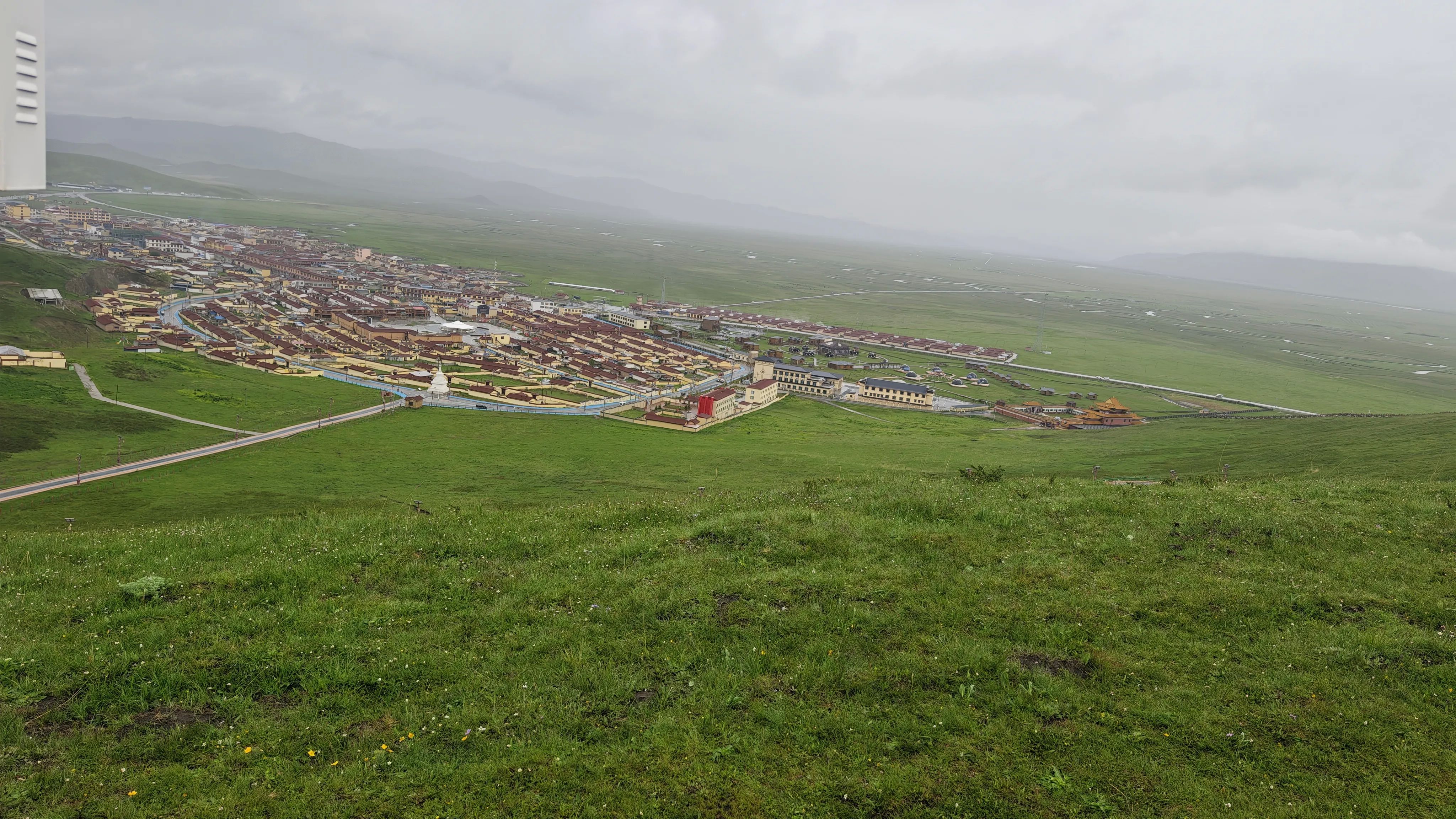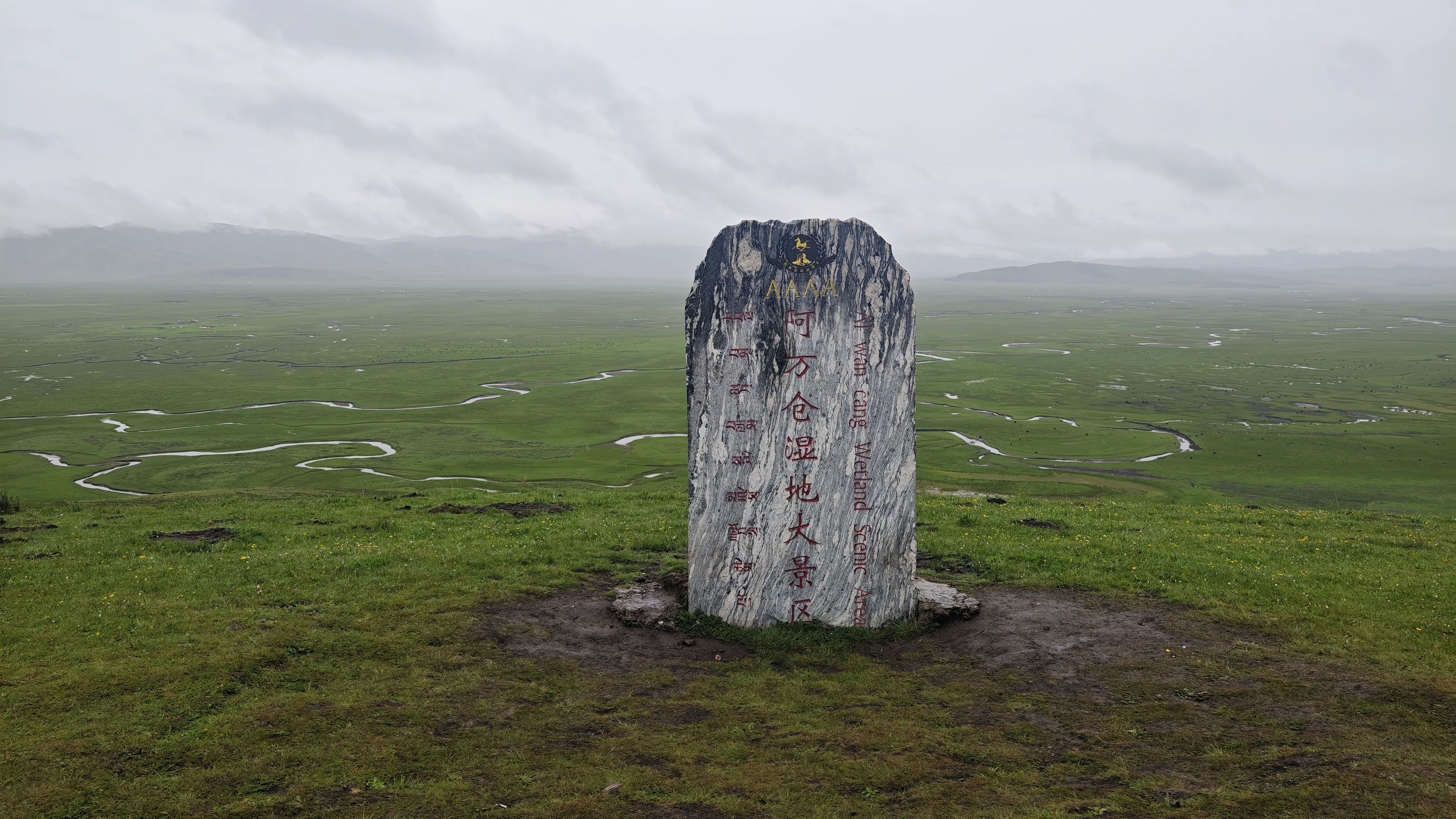 今天是我们来甘南旅游第十一天,早上七点多钟我们从甘肃县城玛曲出发,今天旅游的景点:天下黄河第一湾,万仓湿地公园,琅玛诗,格尔登诗四个景点。八点多钟我们来到了天下黄河第一湾,天公不作美,天下着小雨,天气又冷,我们只好下车打卡,眼睛环四周一圈。就算来到了这个景点。然后我们来到万仓湿地公园,万仓湿地公园是我国最美的四大草原之一 虽然天也下着小雨,但是公园的美景把大家吸引住了。我们沿着木板铺的小路走到草原最高的观景台。望见草原无边无际,碧绿的草原中一条条银色的带子在草原中穿梭,那是草原中的溪 水。弯曲从横,原始古朴,静谧和谐,除了自然还是自然,没有城市的喧闹 ,现代化的污染 ,成群的牛羊在草地上悠闲的吃草 ,美丽极了。真是一幅巨大的草原水墨画!