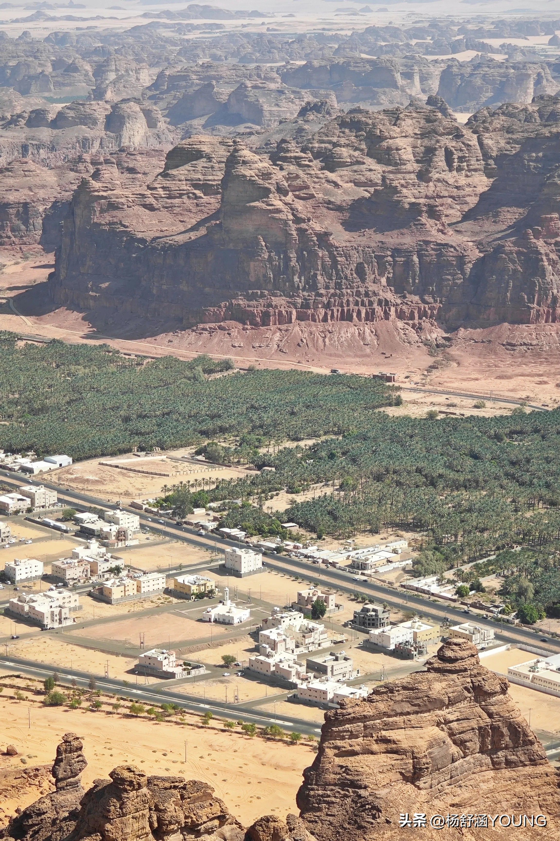 主观景台(海拔817米) 。西北方向:Harrat Khaybar火山链(沙特最长熔岩流,绵延180公里) 。东南方向:阿艾尔奥拉绿洲棕榈矩阵(使用望远镜可辨古城遗址轮廓) 。不同颜色的岩层对应不同的喷发时期(深黑色=1万年内,赭红色=80万年前)