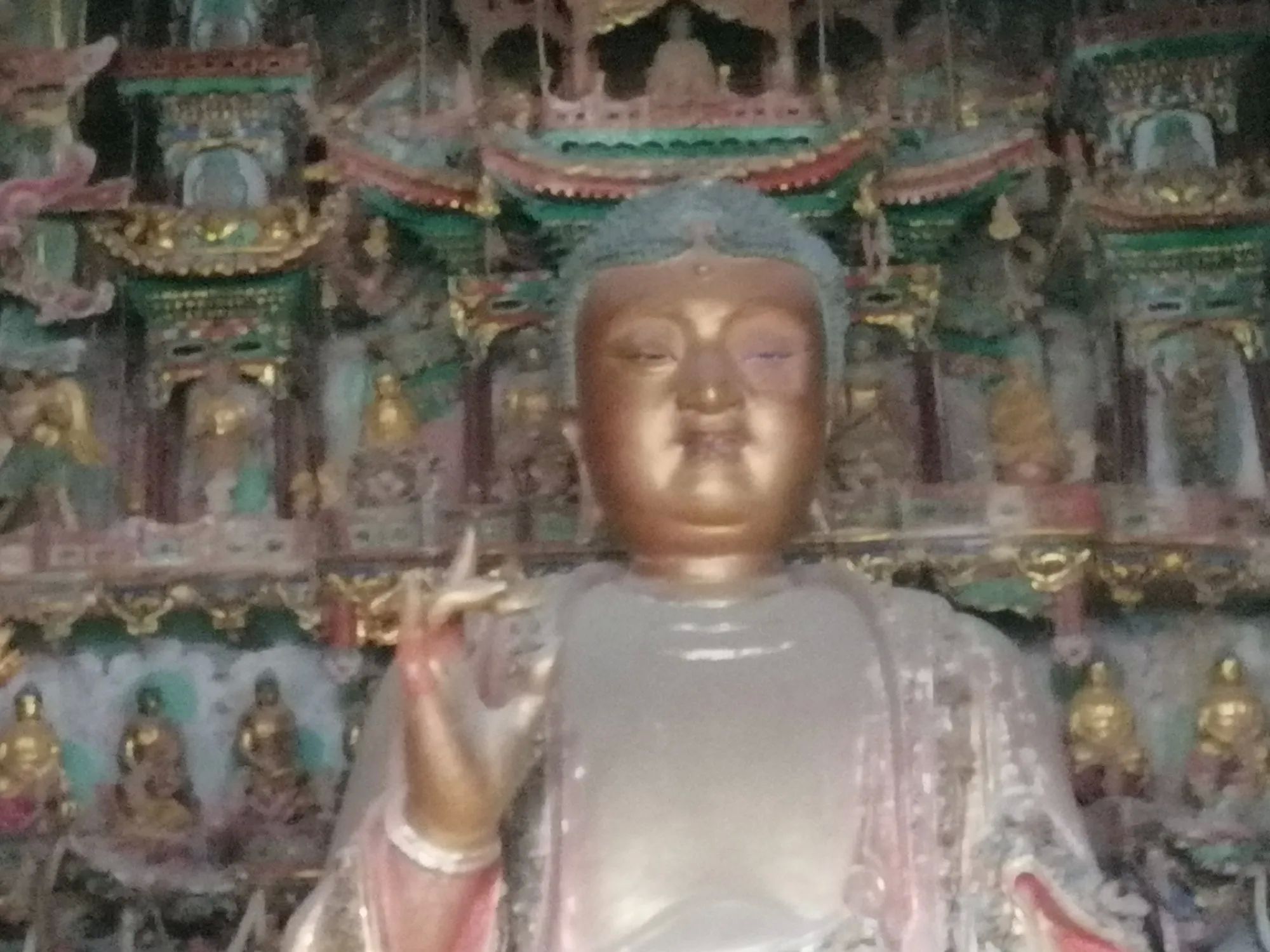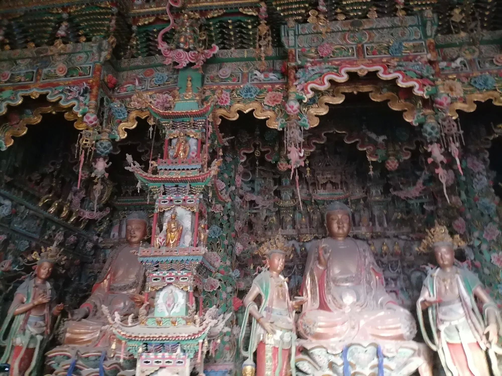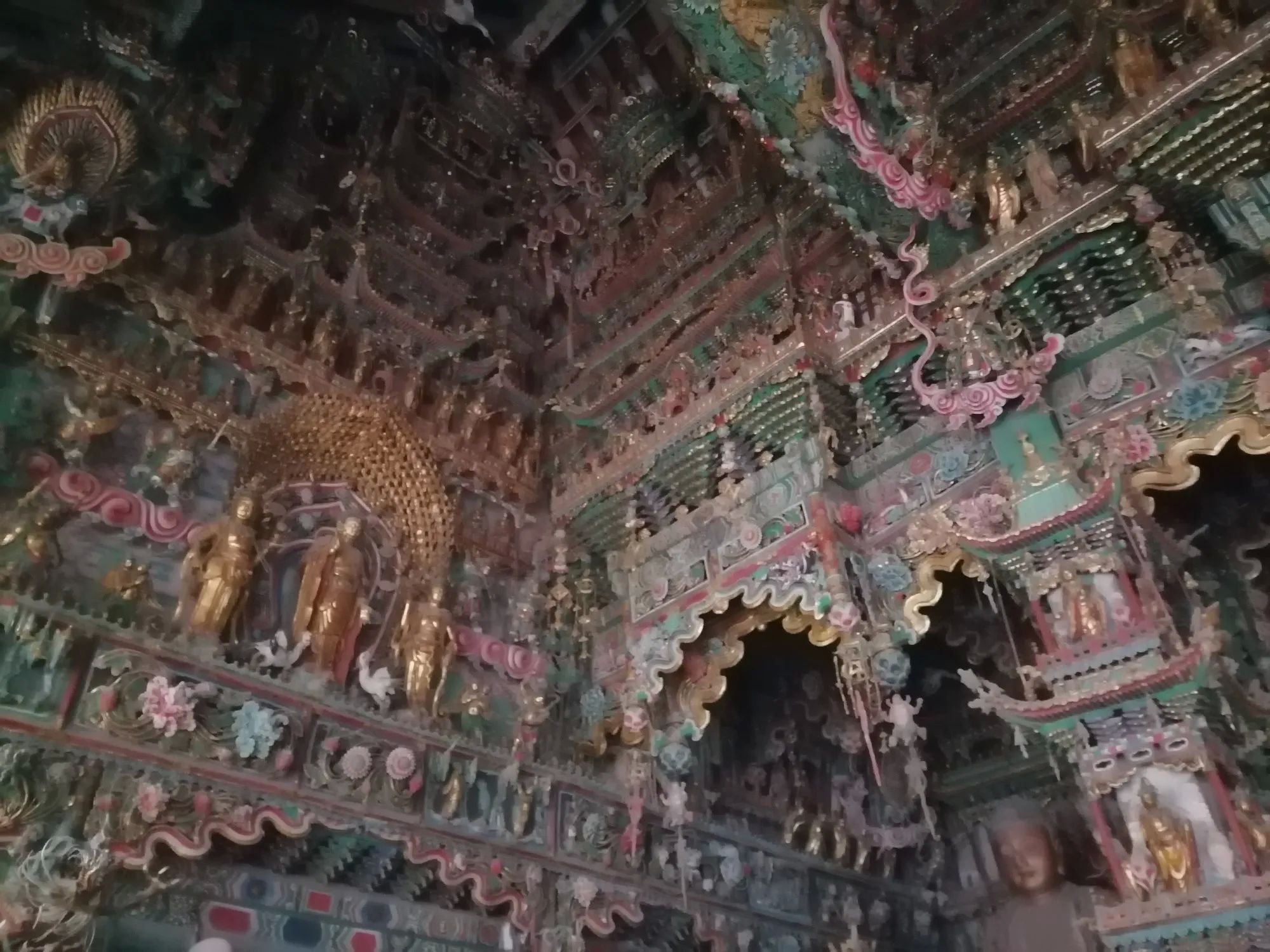 小西天又名千佛庙。它确实不大,但主殿“大雄宝殿”的悬塑空前绝后、无与伦比。这个大殿有1978个彩塑,所以是名副其实的千佛庙。据说这些佛像都是铜铸且表面贴金的。数量之多、色彩之艳丽、悬塑技术之高超,是其他庙宇无法比拟的,可以说蔚为壮观,值得一看(小西天接待能力有限,门票需要提前预约)。