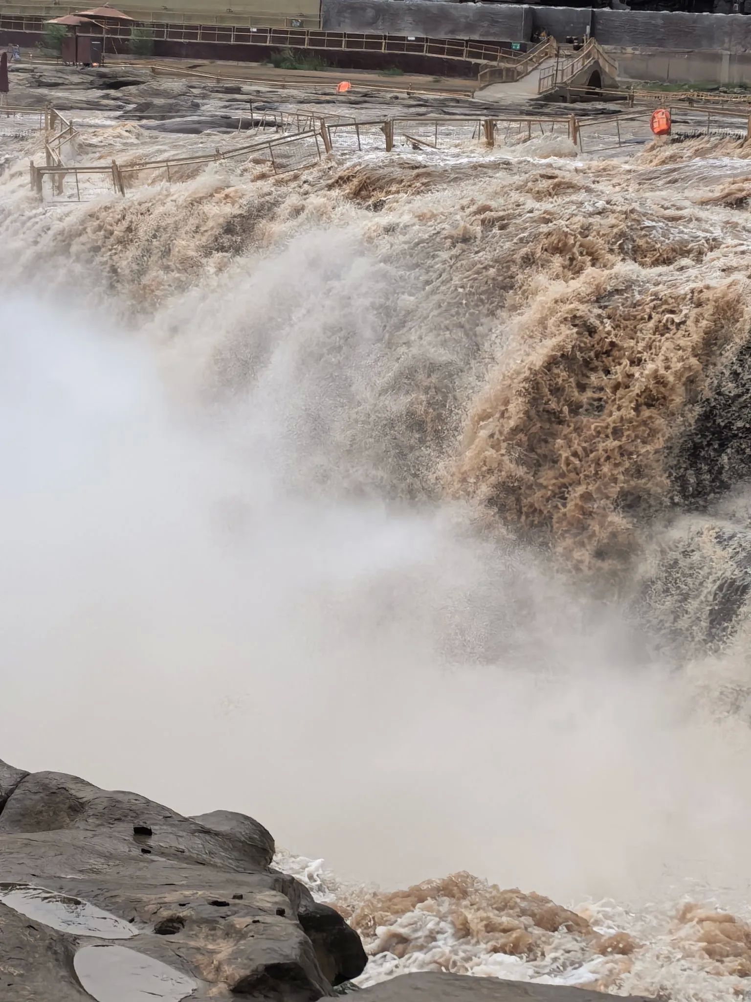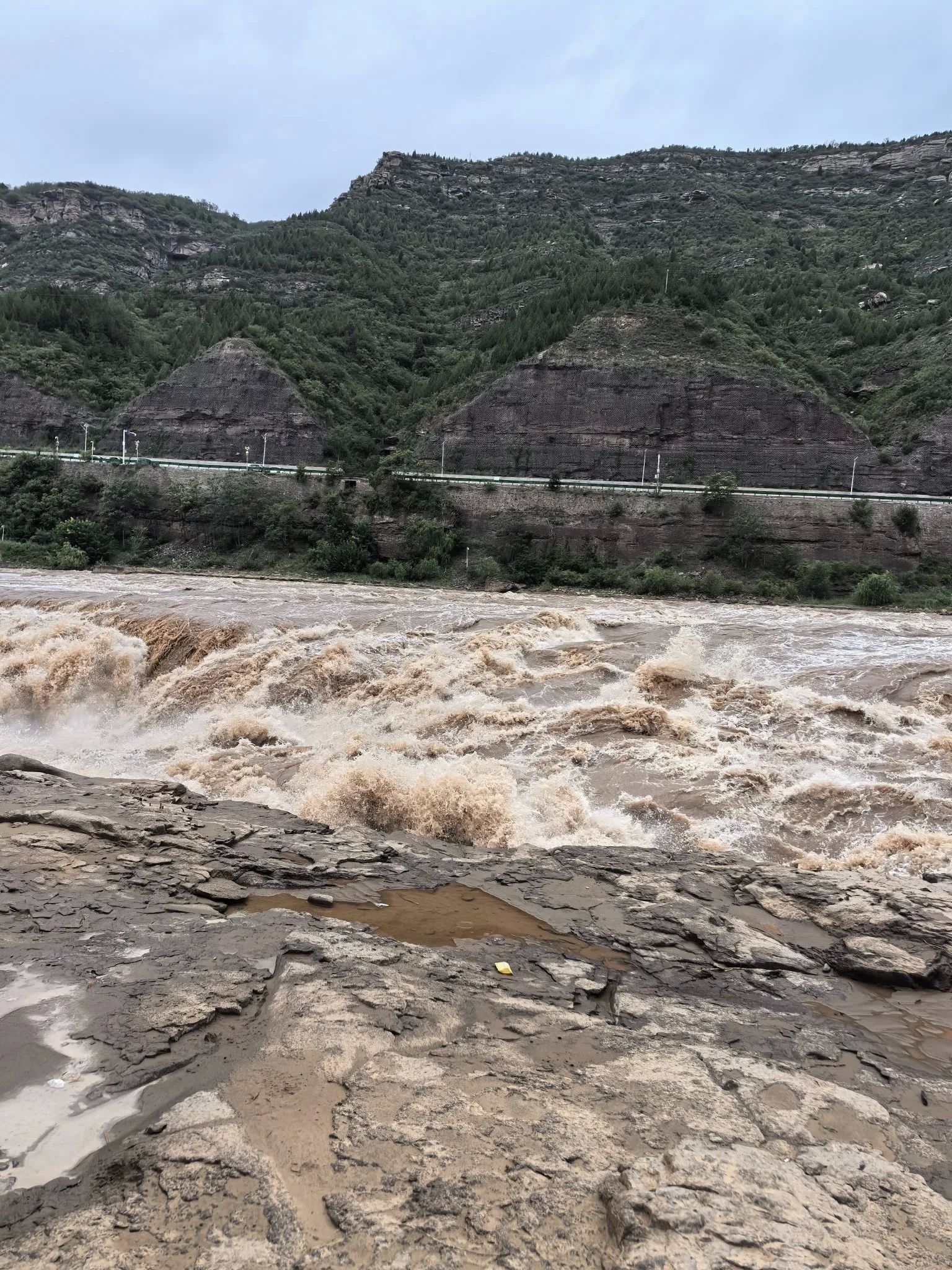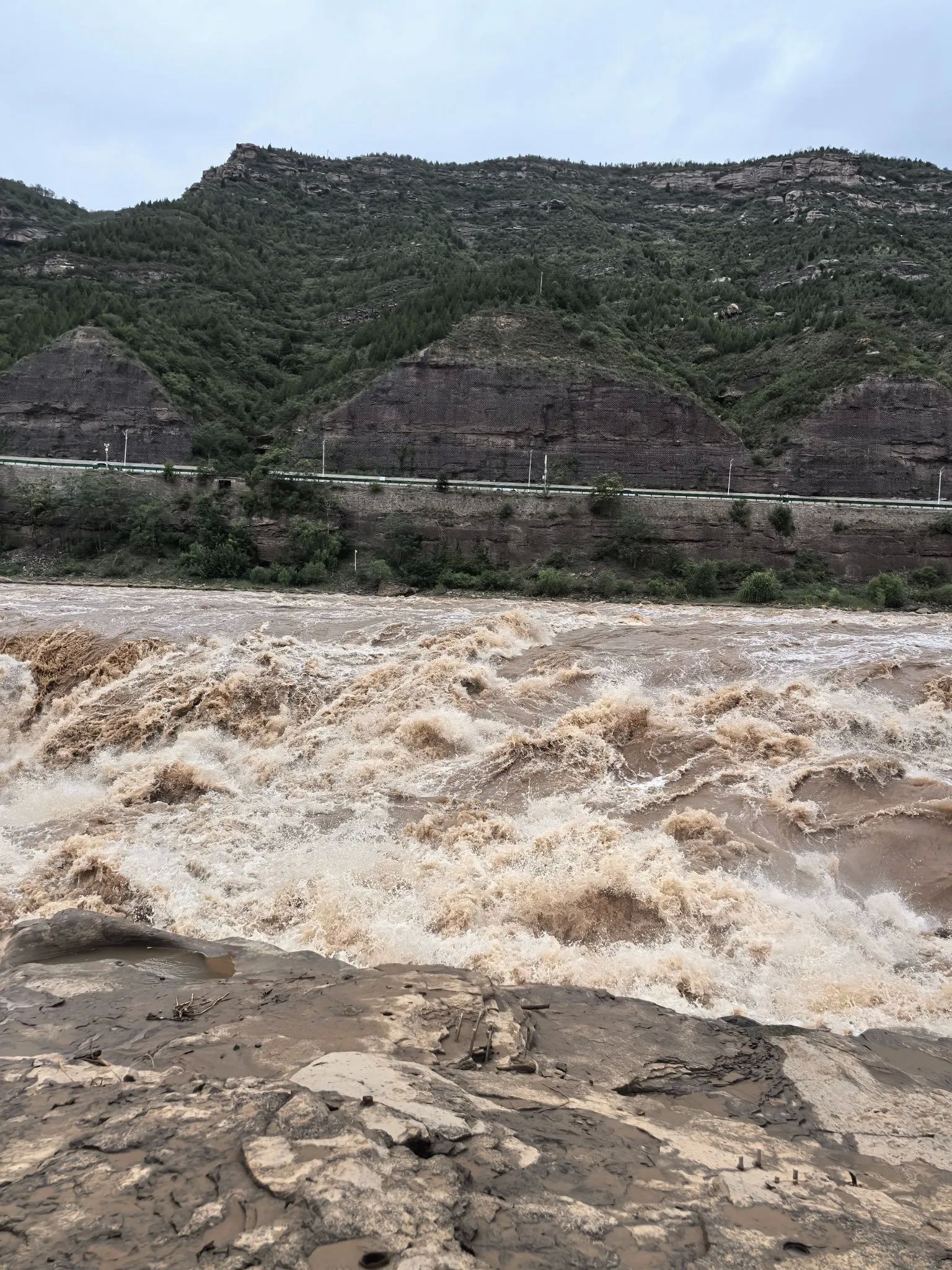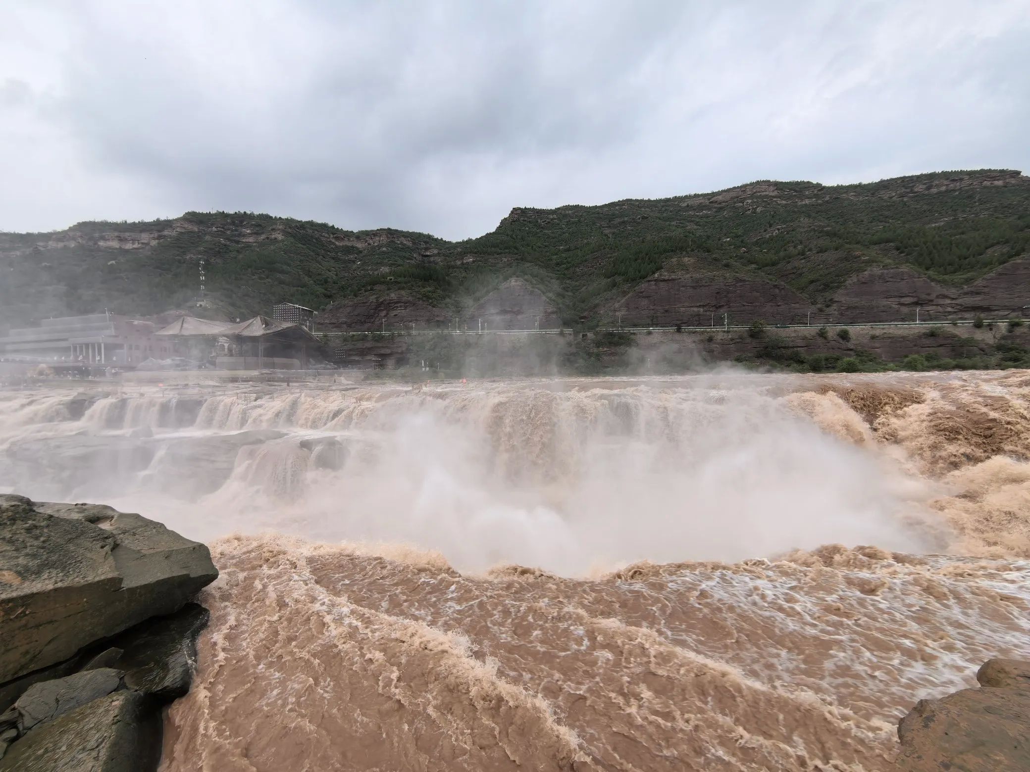 返回高速,车上吃零食,向前进。经大宁,到吉县,乘摆渡车进入主景区。未见水流,先闻涛声,如雷轰鸣。踏上石滩,母亲黄河已将我揽入臂弯。“黄河之水天上来,奔流到海不复回。”河水在此处拐弯收窄,水流湍急,声若雷鸣 。随着人流向前,黄色瀑布渐入眼前,那声音起初隐约,如远处闷雷,愈行愈近,愈发震耳欲聋,水如沸,雾如腾。见过江南的瀑布,纤细如线,温婉如女子;西南的瀑布,雄浑壮阔,声震山谷 。而眼前这黄河之水,竟不似别处瀑布那般垂直跌落,而是从宽阔的河床突然收缩,挤入一道狭窄的石槽中,水流相互推挤、激荡,形成一片沸腾的浊浪,然后猛然跌入十余米深的壶形峡谷中 。那气势,仿佛千军万马冲锋陷阵,又似无数黄龙翻滚搏斗 。黄河水浑浊,挟带着上游的黄土,呈现出一种独特的赭黄色 。水流在石槽中左冲右突,激起数米高的浪花,泛出金红色的光芒 。我凝视着这奔腾不息的水流,忽然想起家乡河流的平静,想起湖泊的浩渺,那些水是温顺的,是养育人的;而眼前这黄河之水,却是暴烈的,是磨炼人的意志的。 抗日战争时期,革命诗人光未然与音乐家冼星海,正是受黄河壮丽景象的激励,在壶口瀑布旁创作出鼓舞军民斗志的《黄河大合唱》。“风在吼,马在叫,黄河在咆哮,黄河在咆哮,河西山冈万丈高,河东河北高粱熟了,万山丛中,抗日英雄真不少,青纱帐里,游击健儿逞英豪……”激昂的旋律,仿佛还在黄河上空回荡,诉说着中华民族的坚韧与不屈。