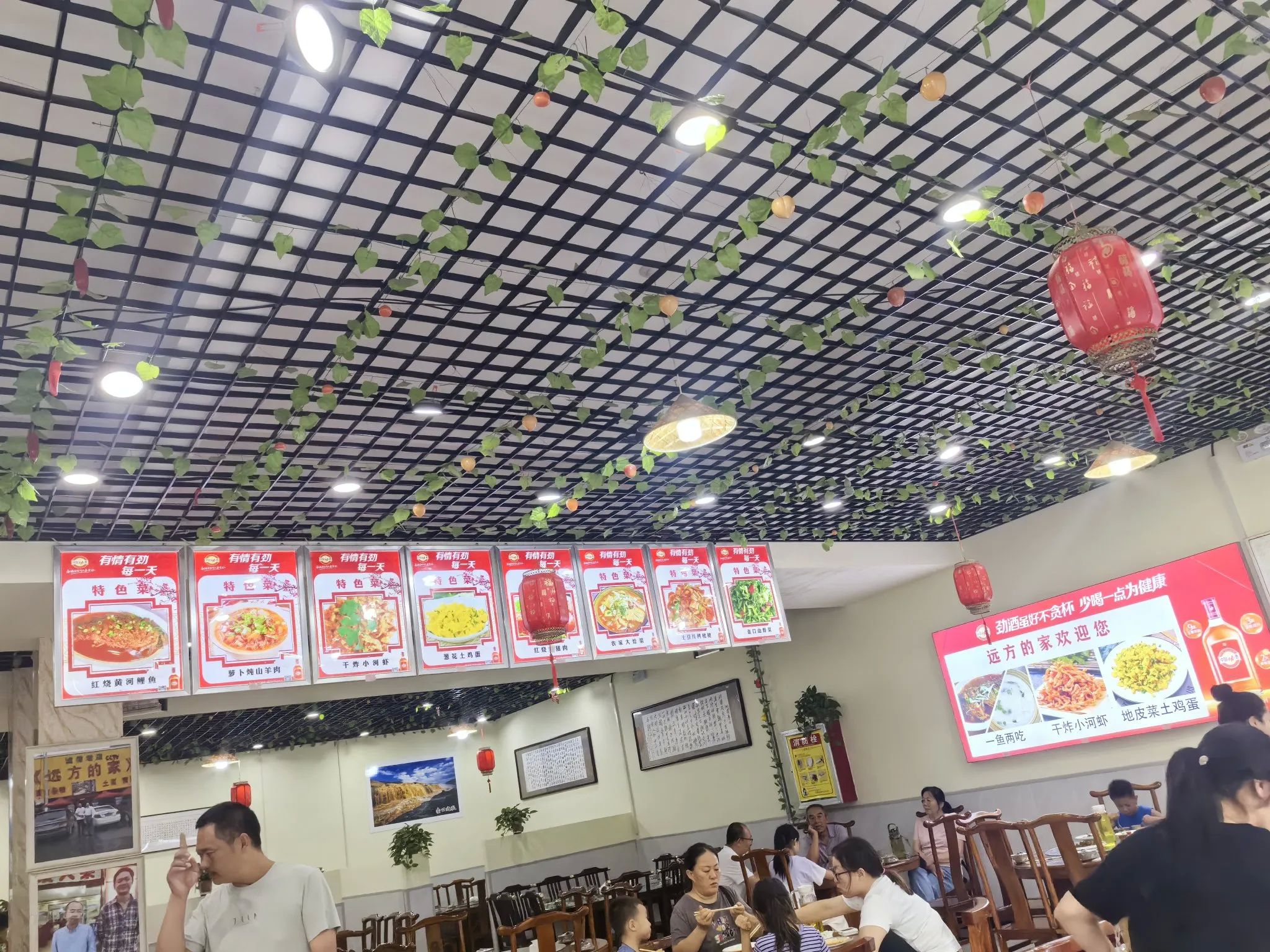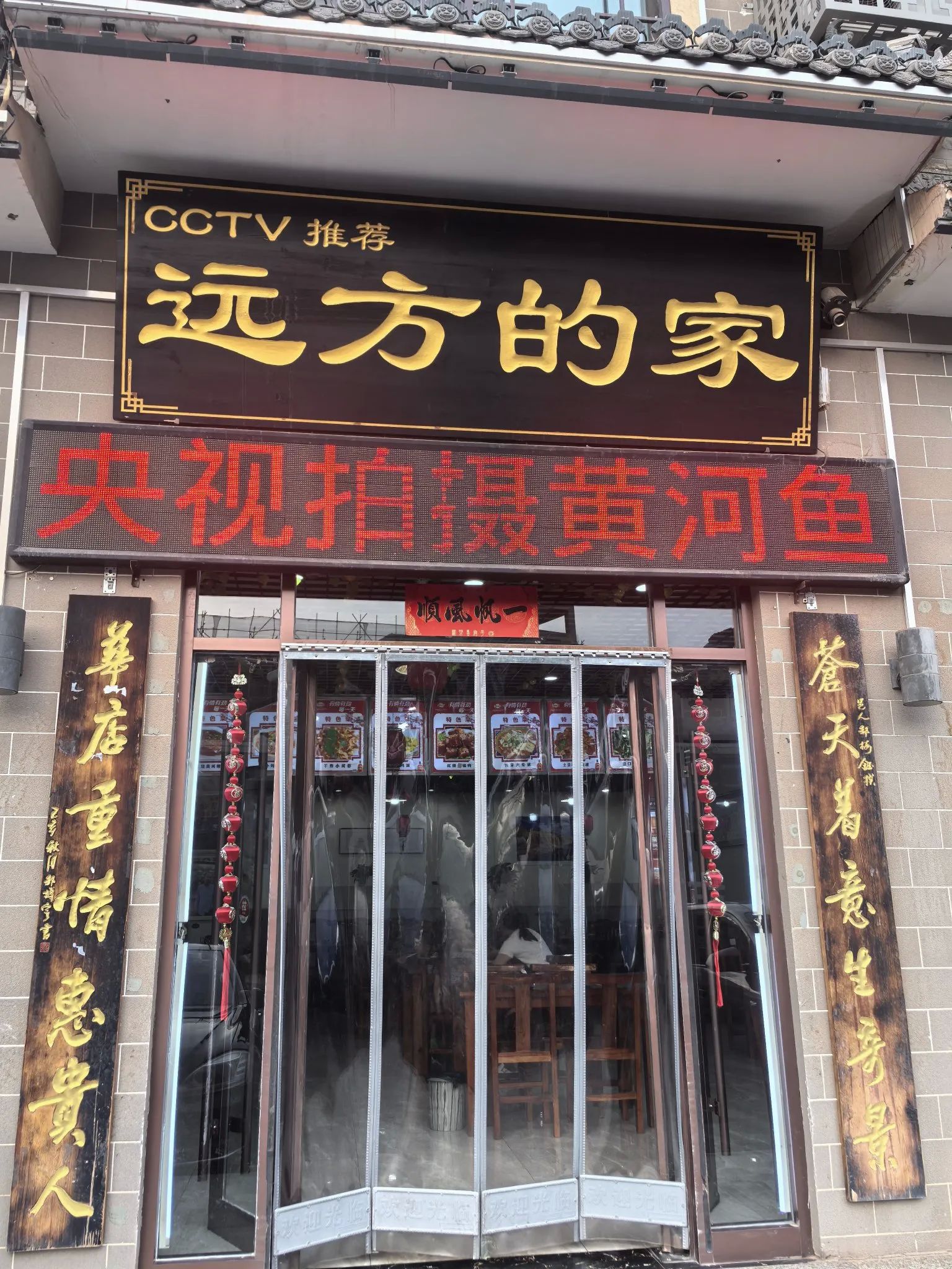 登岸黄河涯,在一家名为“远方的家”的餐馆就餐,内挂多幅店老板与影视、媒体名人的合影。点了黄河大鲤鱼一鱼两吃,萝卜炖羊肉,刀切马肉,地皮菜炒鸡蛋和特色青菜,味道鲜美。鲤鱼是店主让我在鱼箱挑选的,活蹦乱跳,至于是不是野生,在此不便妄言。