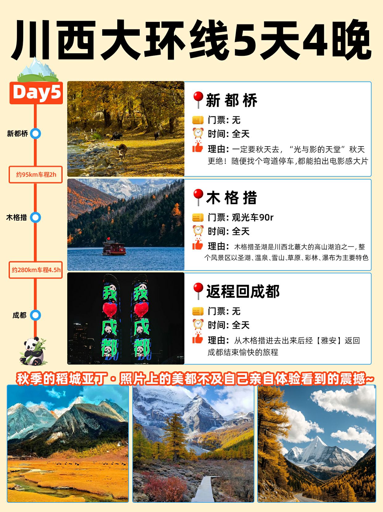 计划10月来川西旅游的姐妹,今天给大家分享深度畅玩版的5日游攻略,附带醉新的路线攻略