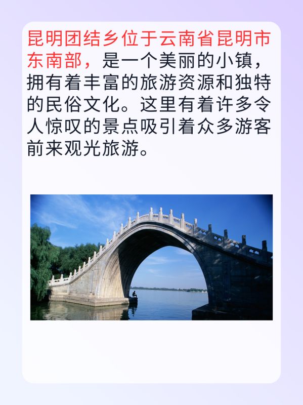 据我的了解昆明团结乡位于云南省昆明市东南部,是一个美丽的小镇,拥有着丰富的旅游资源和独特的民俗文化。