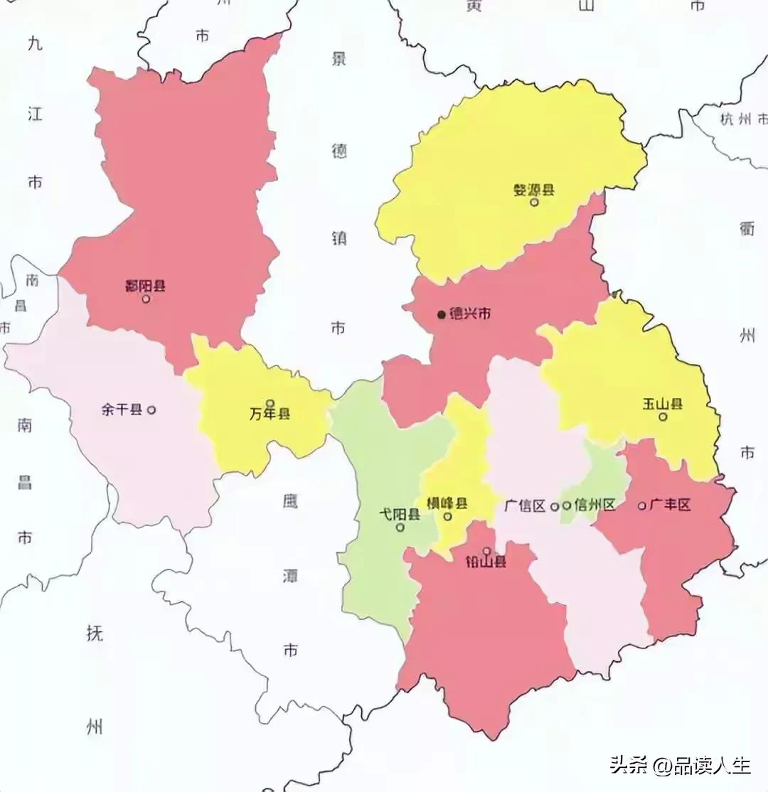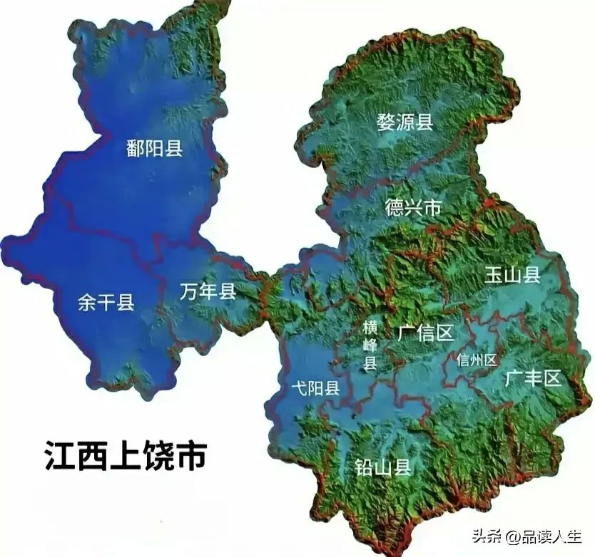 其实提起上饶,真的很容易让人忽略,打开地图可以看到,上饶的形状形似一个哑铃,全市被分为左右两部分,中间有一条走廊相连。