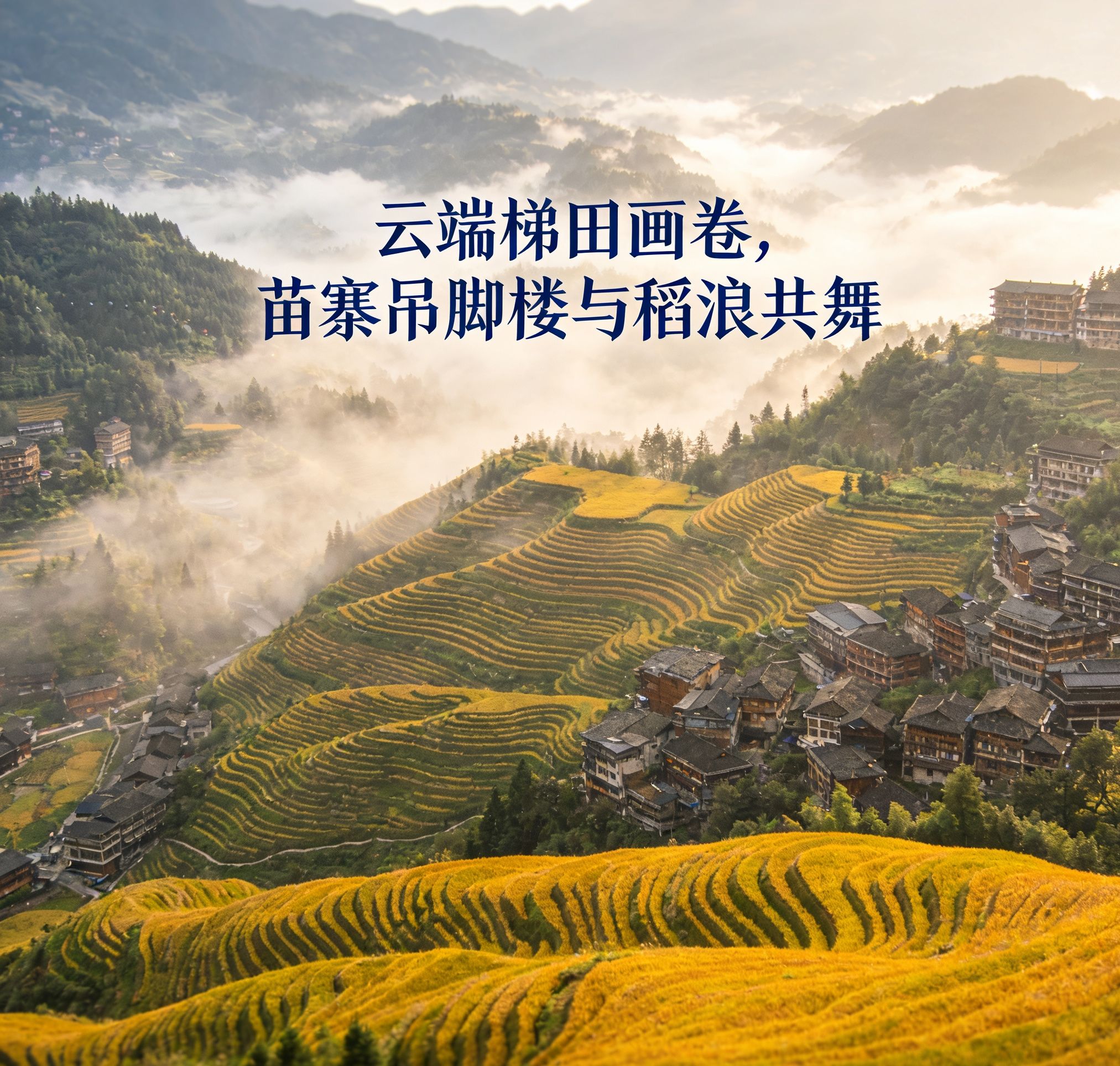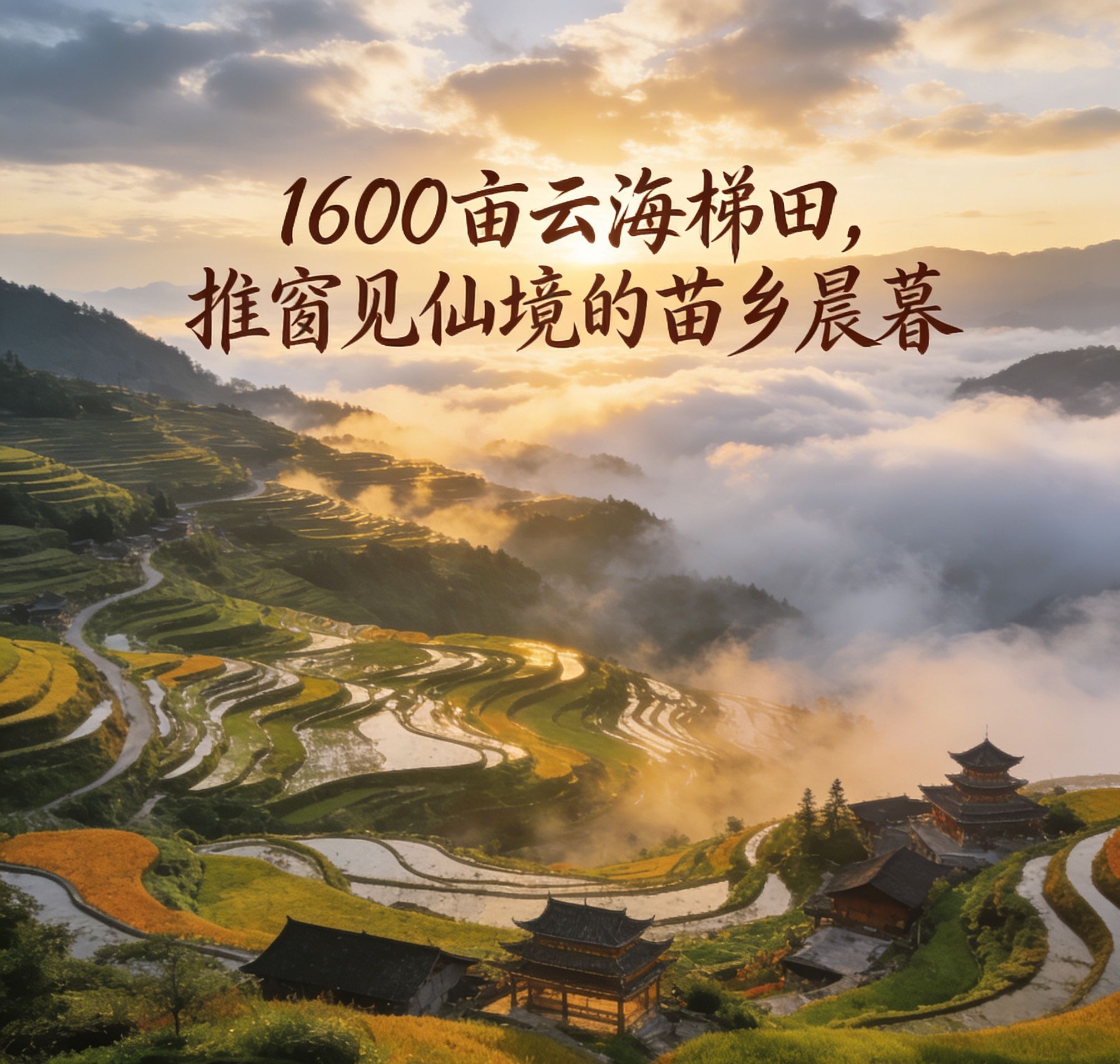 1600亩梯田随山势起伏,春灌时水光映云海如诗如画。徒步20分钟可探寻隐秘溶洞、邂逅野生瀑布,入住苗寨村民家,推窗便能邂逅云雾缭绕的梯田景致,沉浸式体验苗乡晨暮。