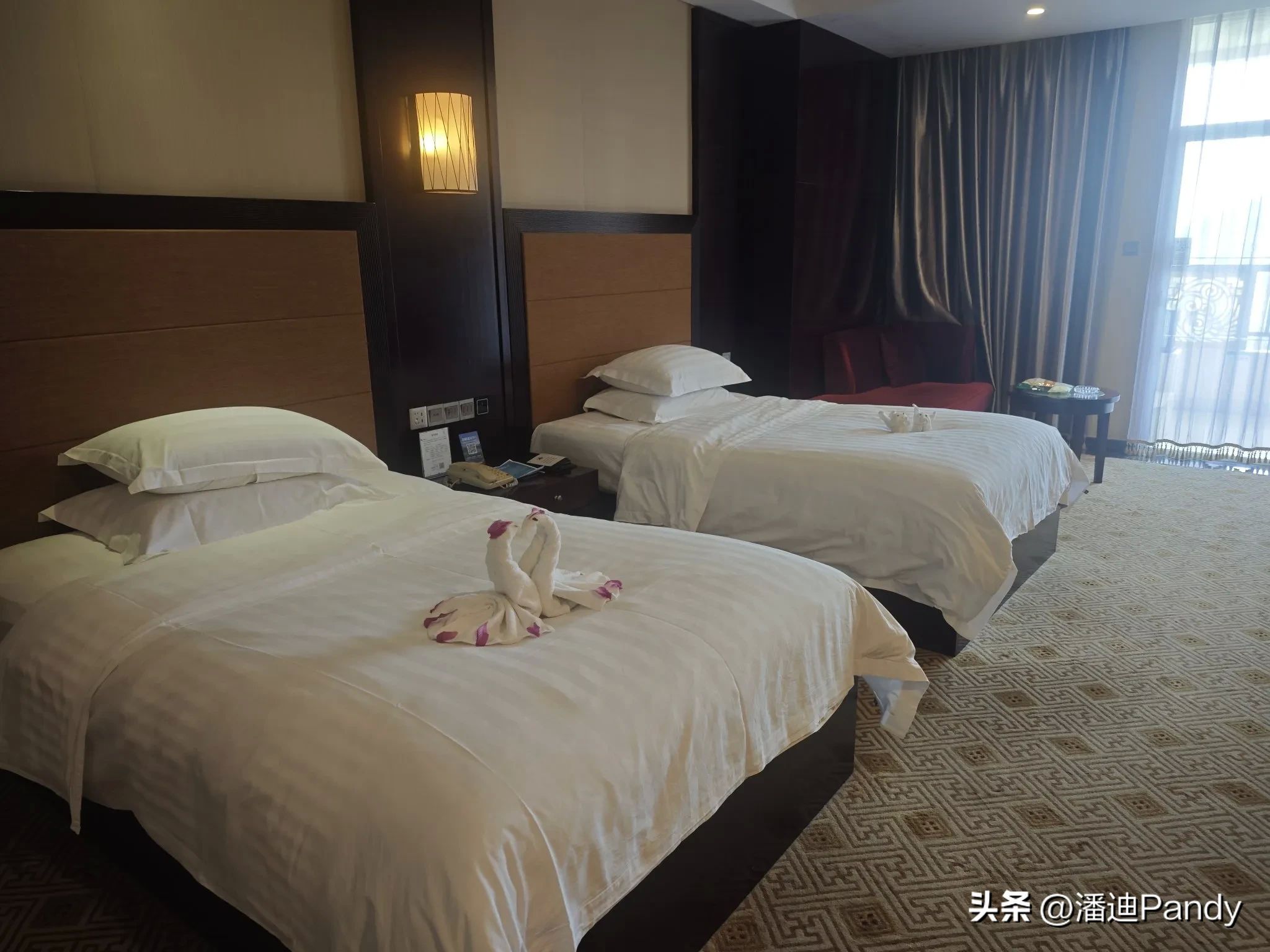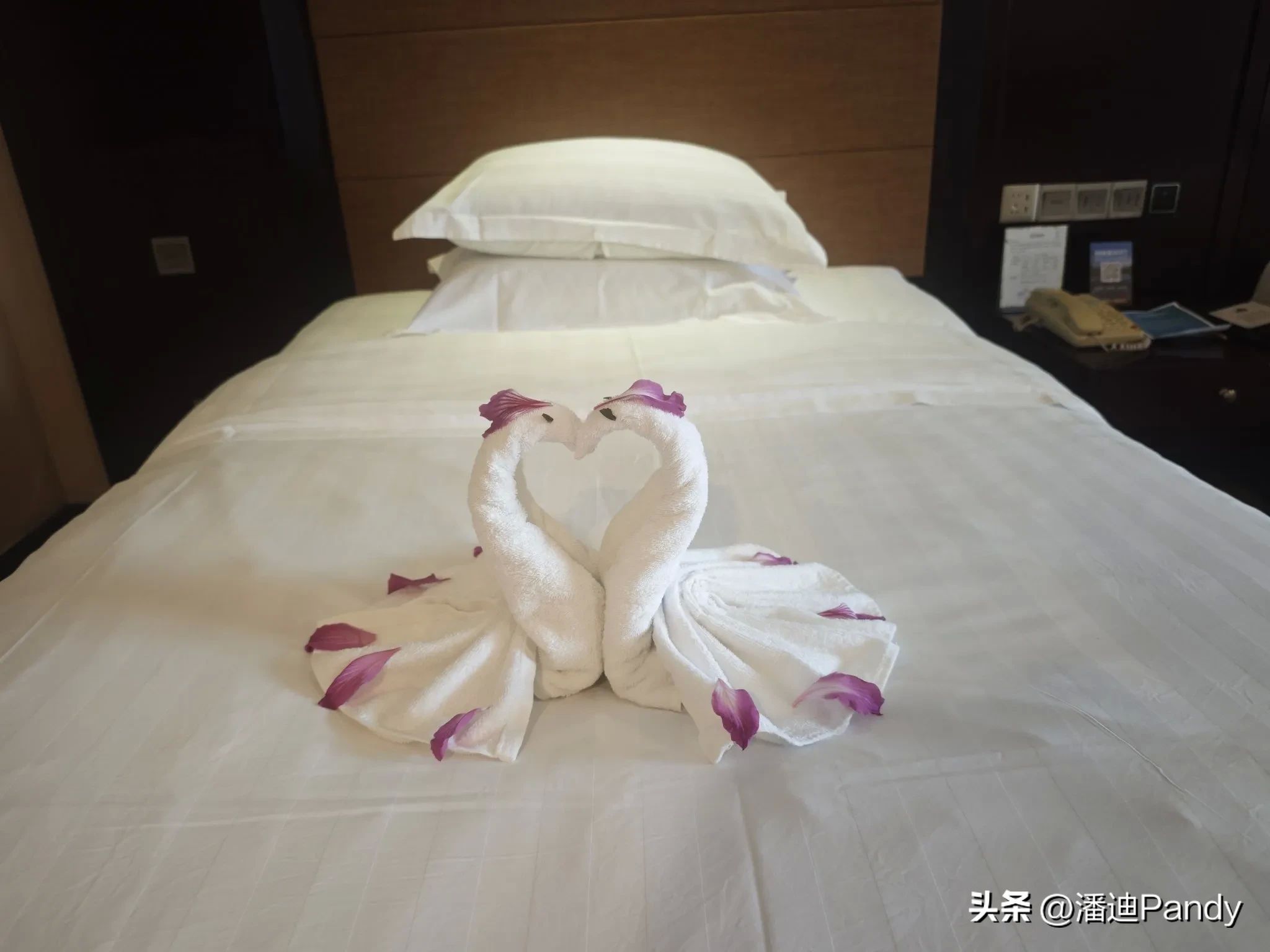 进入客房,冷气已经开了,非常舒适,床上折了欢迎的装饰,还有客房管家手写的欢迎卡片,当然还有时令水果,非常感人。