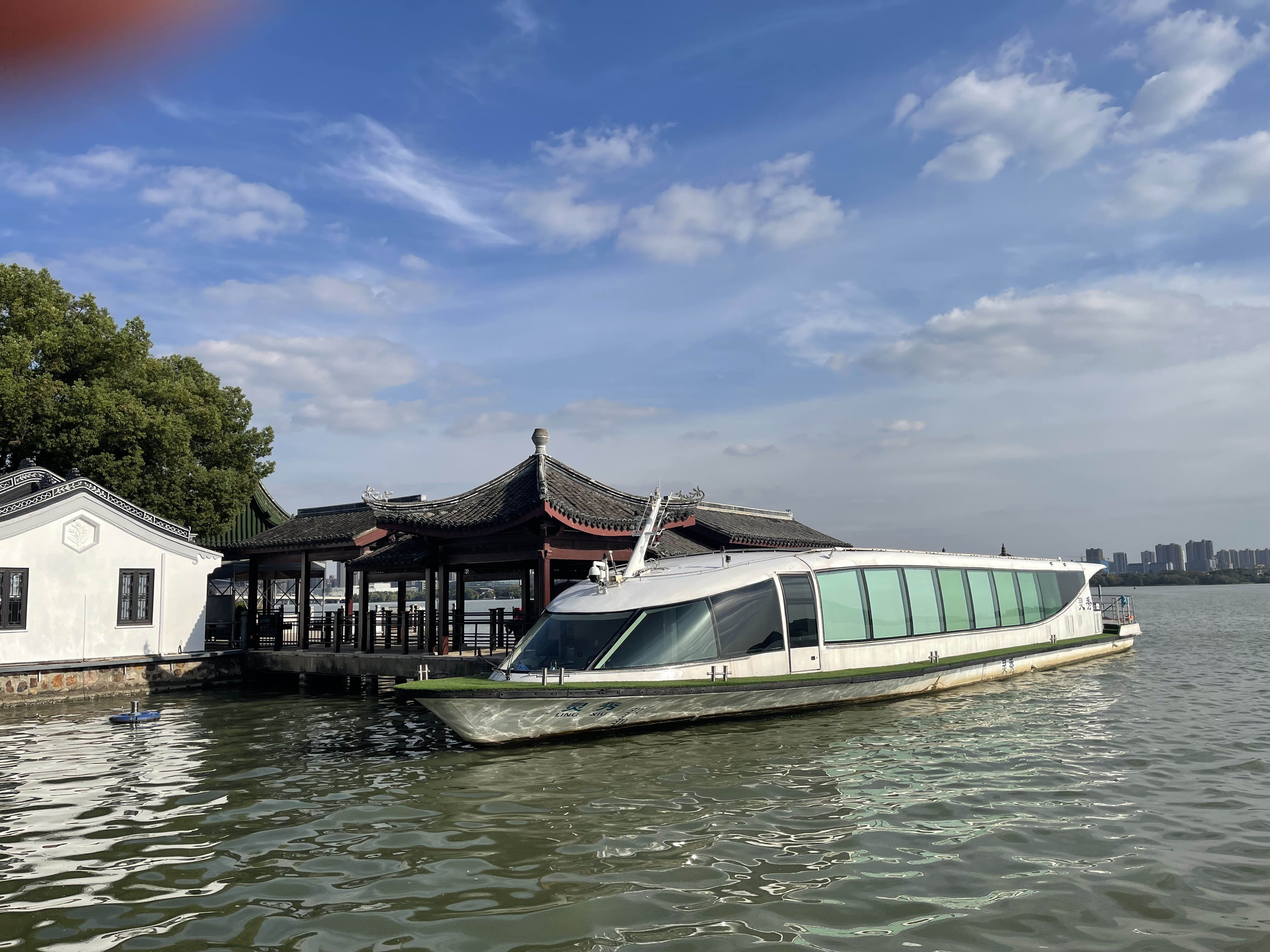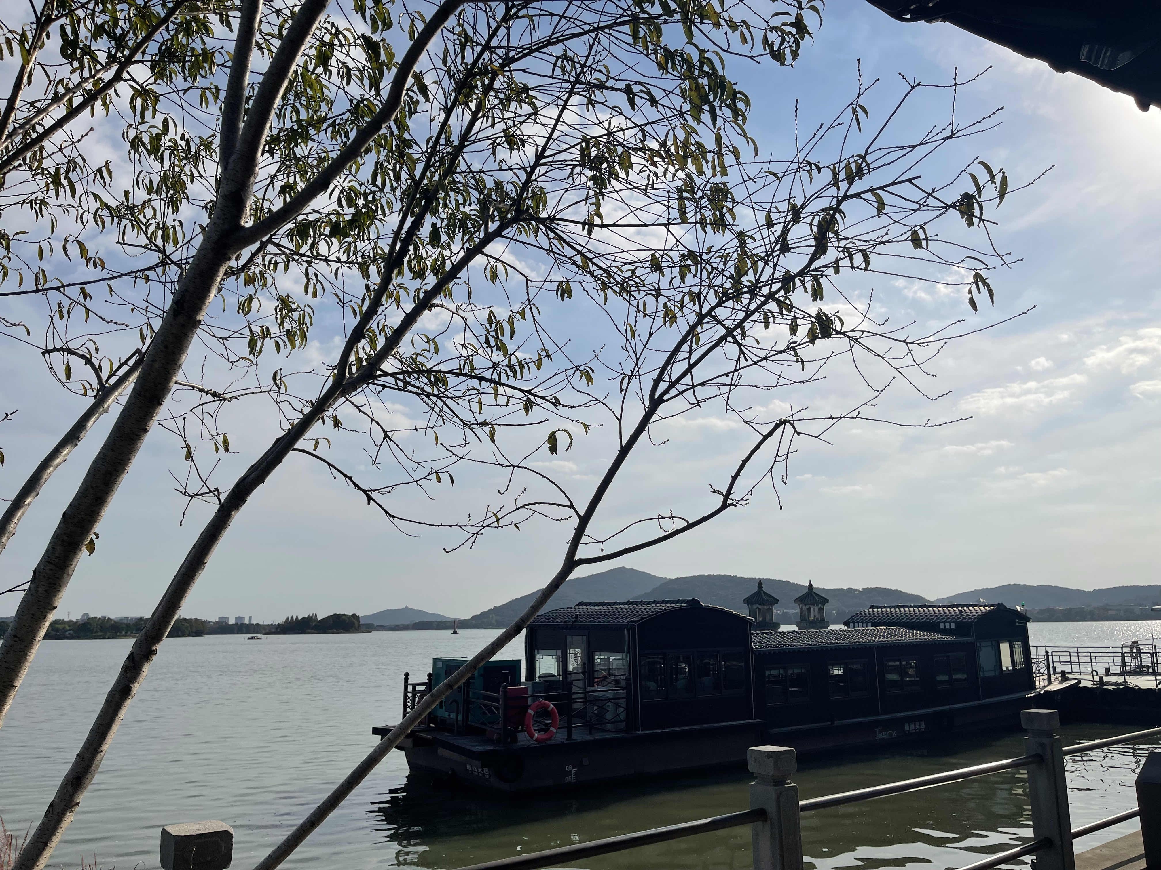 一路上欢声笑语不断,大家沉浸在这如诗如画的美景中。不知不觉来到了游船码头,几个人一合计,决定乘船游览蠡湖。可一打听,游船游览已经停业。