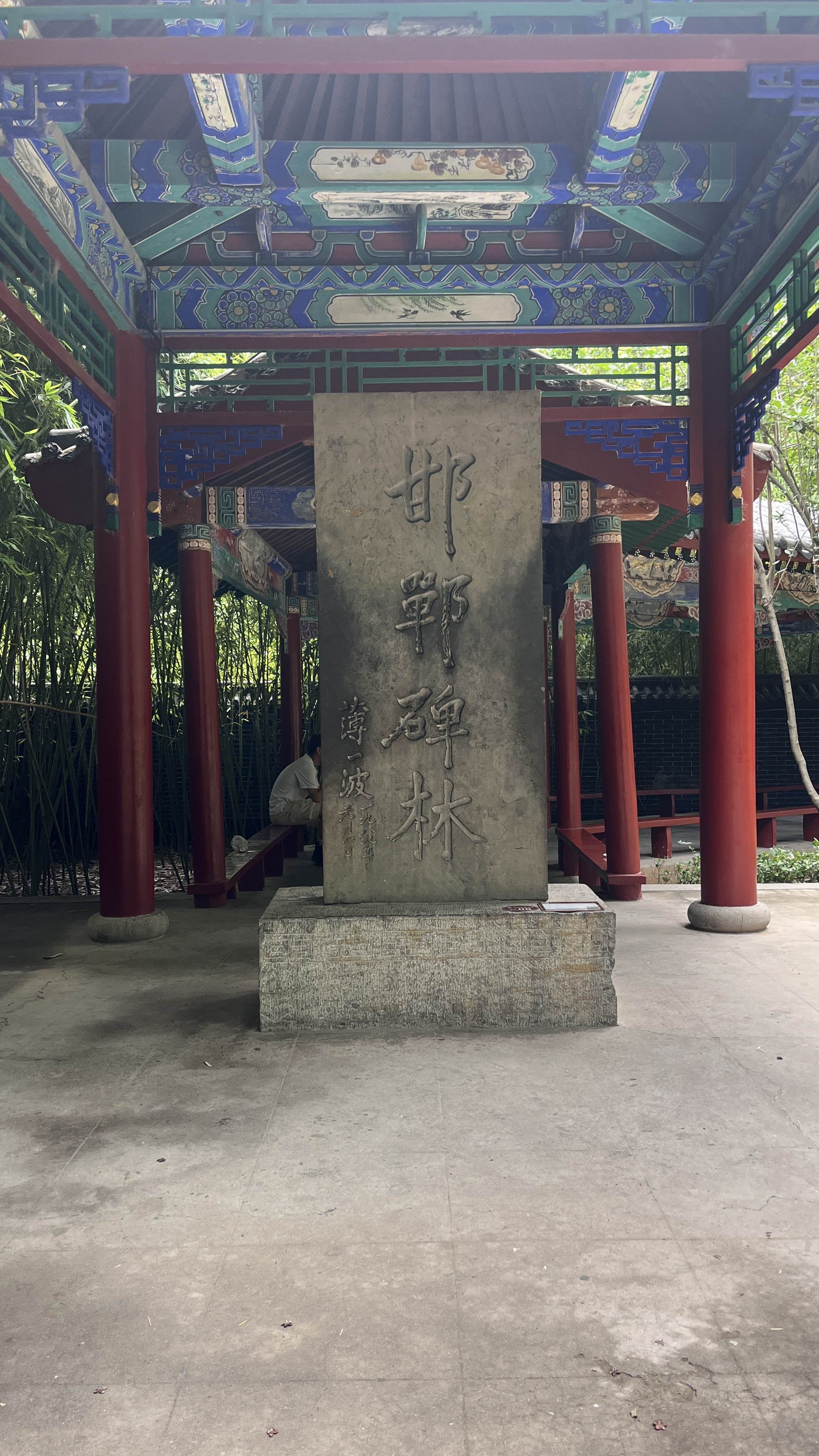 第三天,由于昨天我们走的路太多了,今天睡到了自然醒,起来的时候都9点多了,从酒店出来的时候已经是10点多了,我们就决定吃一个早午饭,听说磁州卤面是当地特色饭店,我们就去了邯郸道一家磁州卤面分店去尝尝,到店后,我们点了两碗面,一个是牛肉面,一个是排骨面,还点了邯郸焖子和炸灌肠,吃完后开始了我们今天的打卡景点-丛台公园。据说丛台公园老早之前是要票的,现在免票了。丛台公园可不是一座普通的公园,它有着2000多年的历史,这座公园以武灵丛台而闻名天下。武灵丛台,相传建于赵国五灵王时期,是赵王检阅军队和观赏歌舞的地方,已有2000多年的历史。我们登上丛台后可以看到丛台公园的全貌,丛台上有乾隆皇帝和郭沫若的题词碑,丛台上还有一个武灵旧馆,游客们可以了解赵武灵王平生事迹,只可惜这位拓土阔疆英王就惨死于一场内乱中,自己也被困于沙丘宫,凄惨地死去。