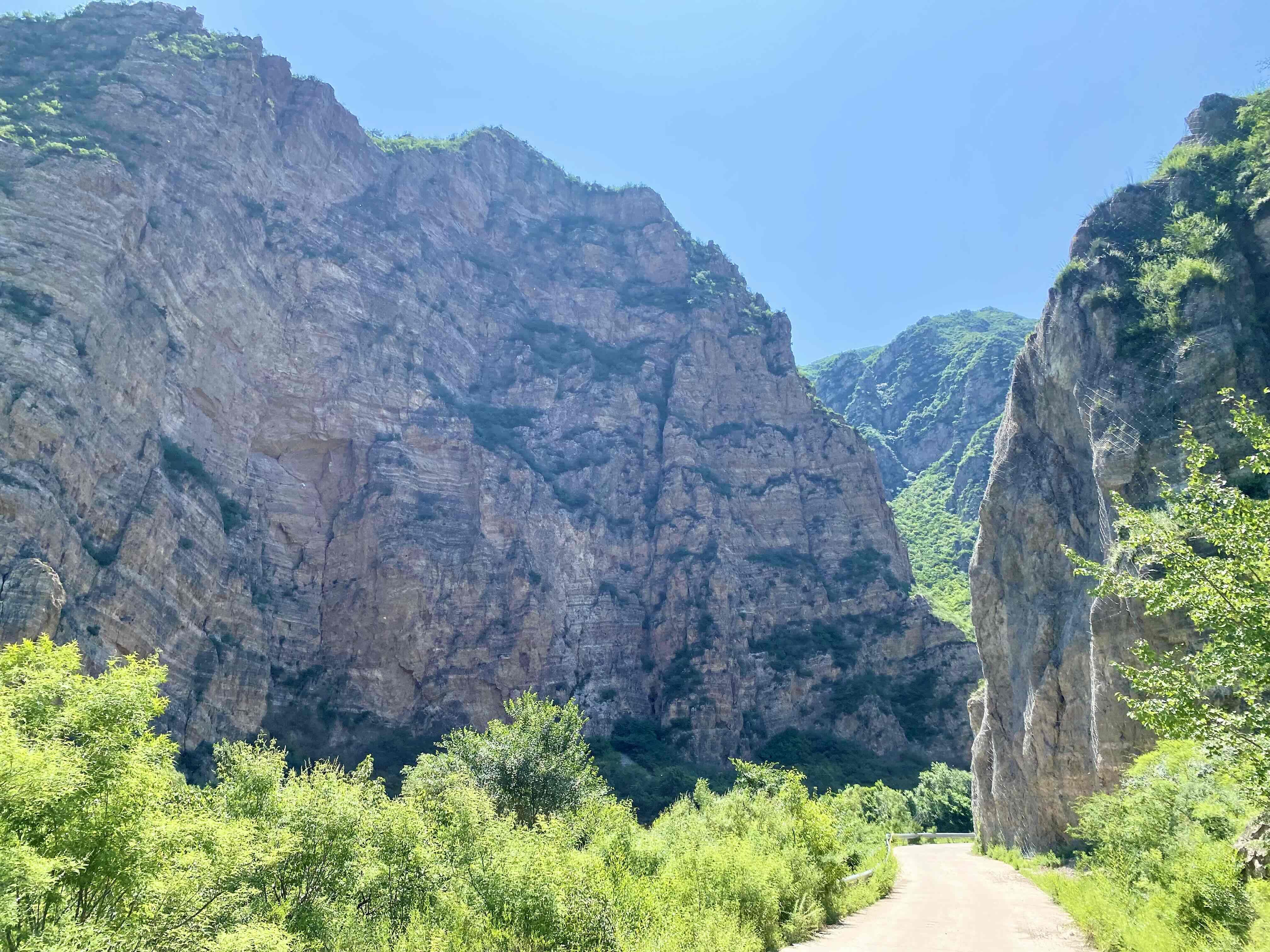 涿鹿县沿桑干河逆流而上,到王家湾乡这一段,虽然道路狭窄,但是沿途风景绝美,两岸岩壁高耸,河谷里桑干河畔树荫连绵,有很多可以下到河边的地方,适合野营休息。只是中途要注意错车问题,拐弯要提前观察,道路有的地方类似挂壁公路,有落石风险,大雨后要谨慎通行。