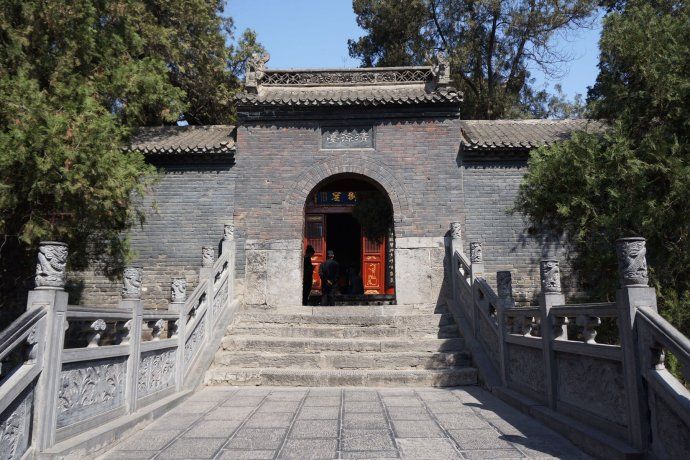 - 山门:是牌坊式拱券三门洞,山门外有两匹宋代石马,相传为汉代驮经之马。