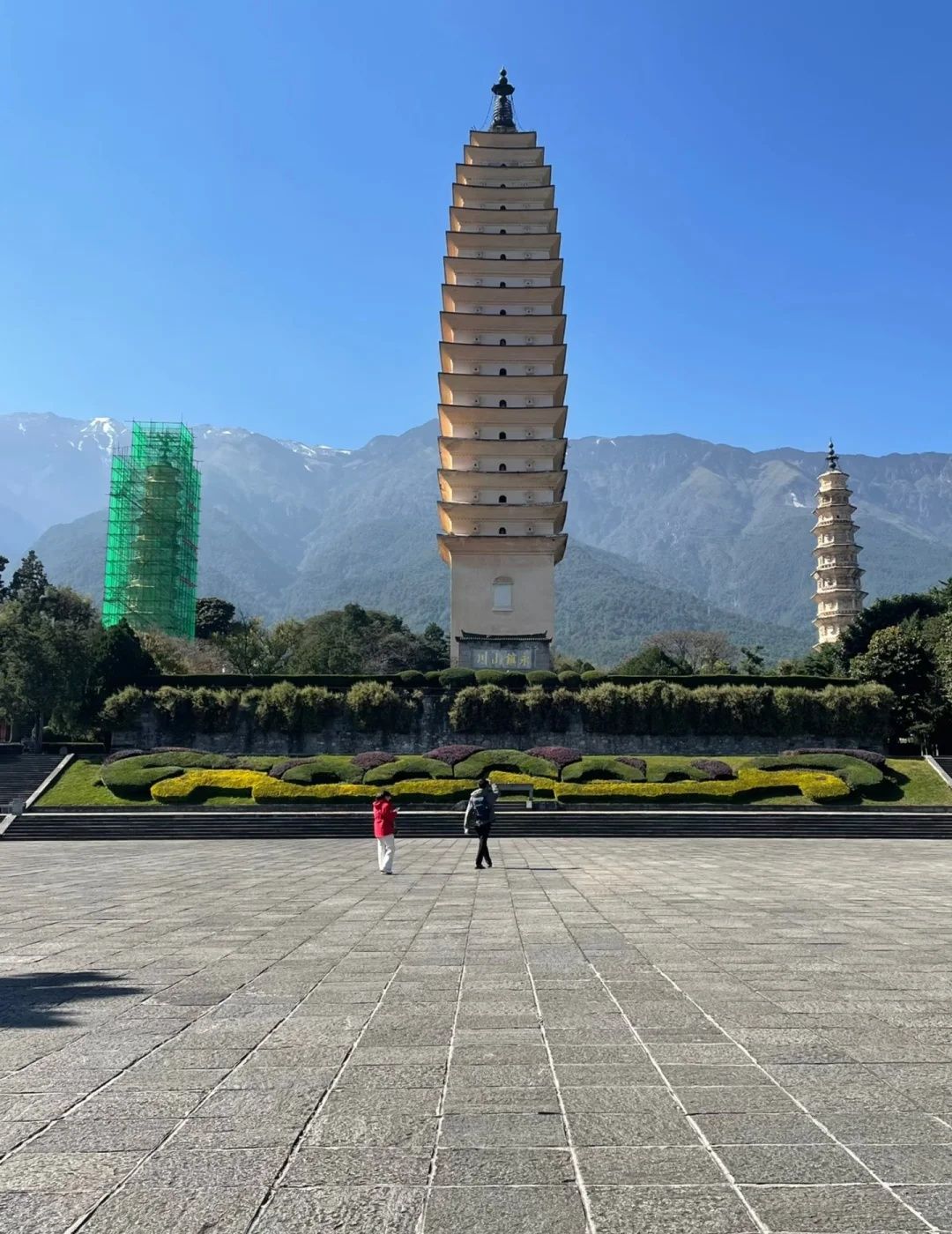 中午:打车十几分钟到崇圣寺三塔,门票 60/学生 30 左右,先在三塔前拍照,再进三塔出土文物陈列馆看看大理历史,园区里有电瓶车,可以坐上去再慢慢走下来。