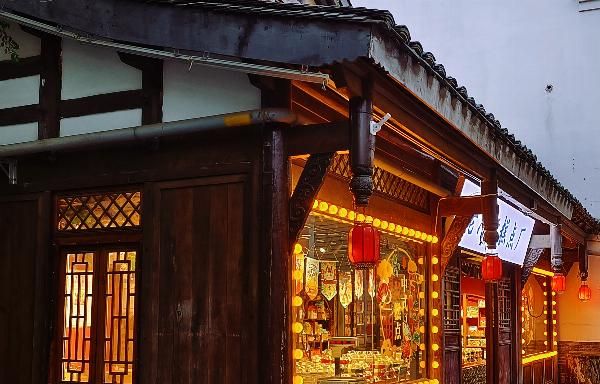 青石板路两旁,泉水潺潺穿流而过,两岸是茶馆、手工艺品店,非常适合悠闲漫步。
