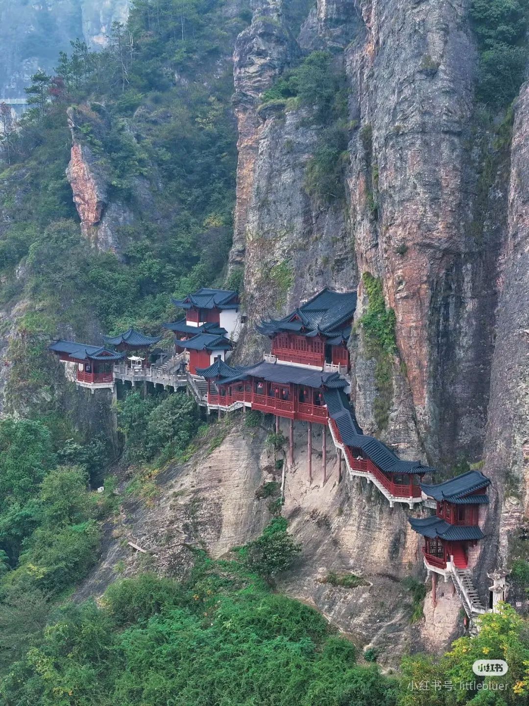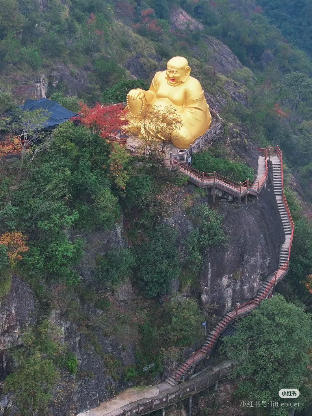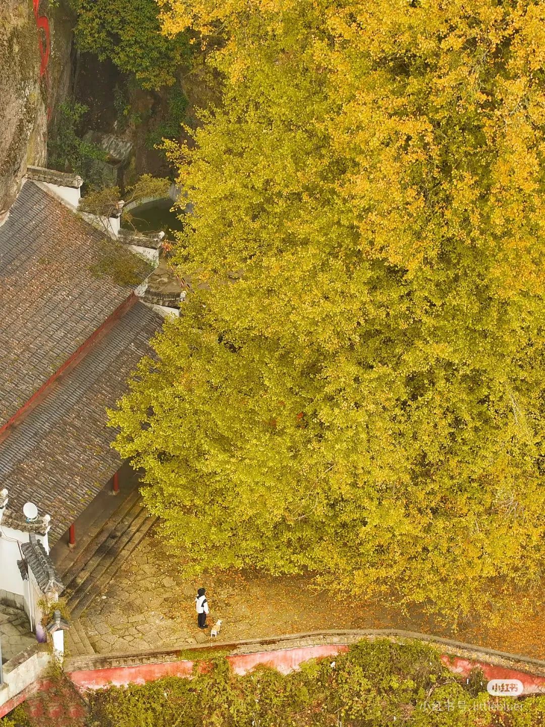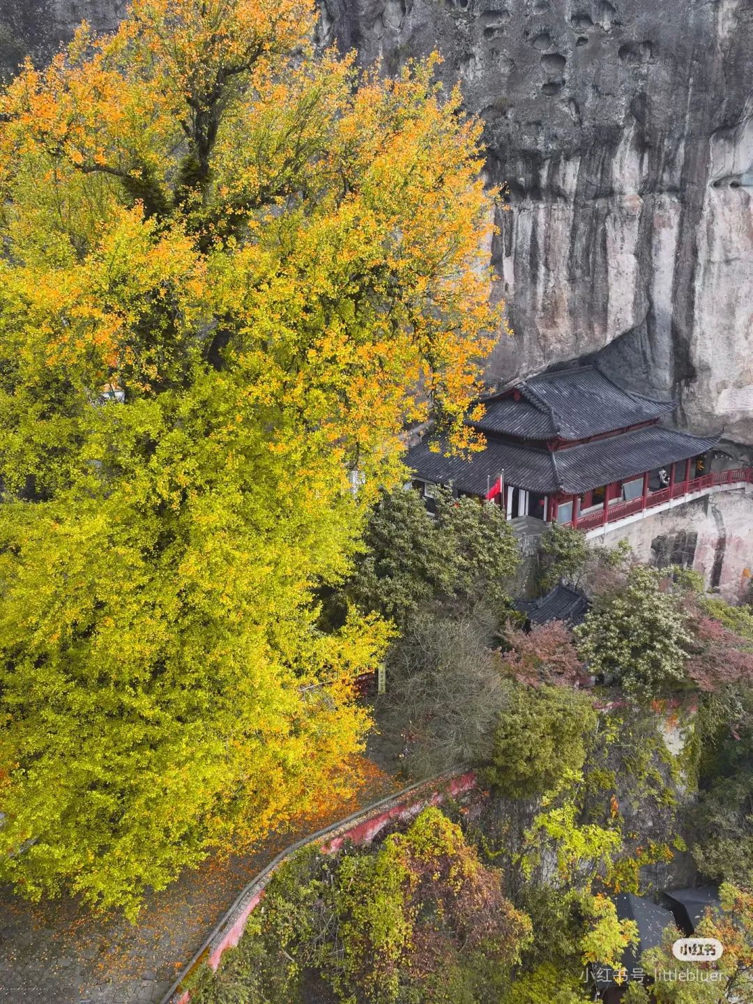 “山是一座佛,佛是一座山”的奇观,众多建筑都建于悬崖绝壁之上,有《庆余年》同款的“江南悬空寺”,坐落于山间的巨大双面佛,都非常壮观。山上700多年的银杏树也到了最佳观赏季节,满树金黄,落叶不扫,很有意境