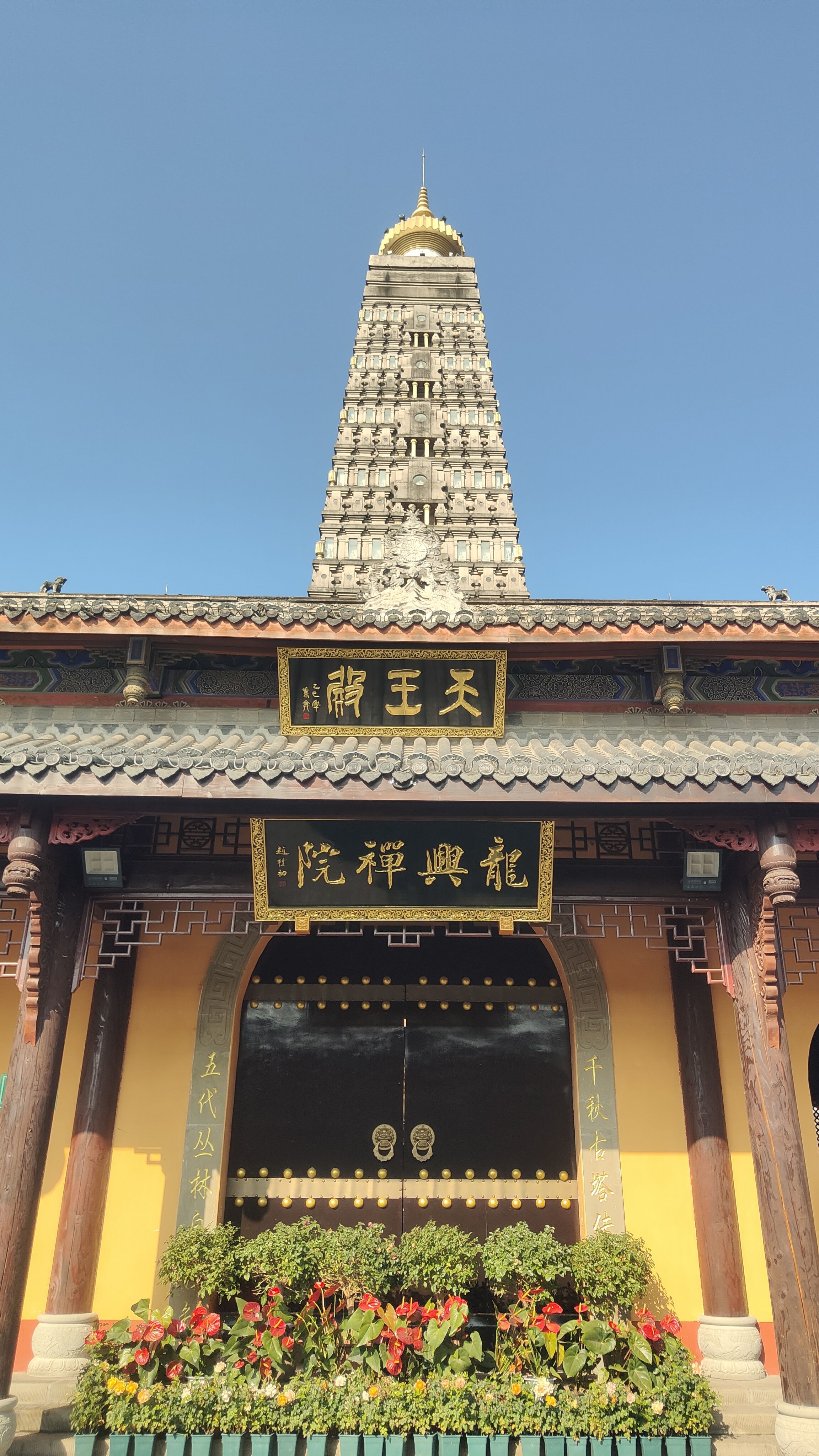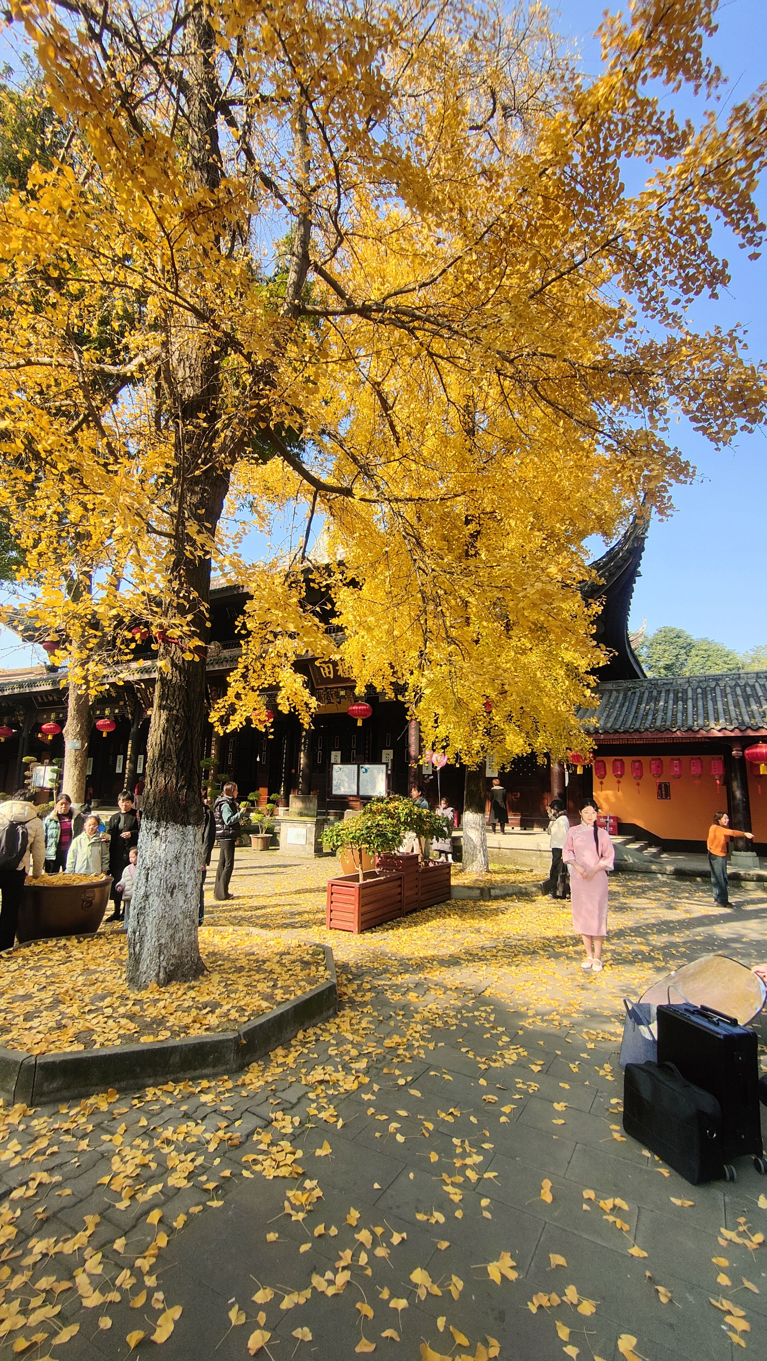 今天成都又是一个大晴天。为了不辜负阳光明媚,今天跟团游览了彭州境内的两处有名的景点。一个是白鹿音乐小镇,一个是龙兴寺及新开发的“药市水街”。若是单从观光旅游的角度出发,我对这两处景区的感觉很一般,尤其是白鹿小镇,因为几年前曾经去过,所以再次去已经没有了当初去的神秘感。最让我感到失望的是,如今的白鹿镇已是今非昔比,小镇竟然变得如此萧条,冷清。整个小镇也看不到几个游客,可能与季节不对或者是小镇搞建设有关。里面的主要街道正在做路面地砖重铺施工,路被挡住,我只好沿着小镇外围转了一圈,拍了几张照片,就出来了,让我有那么一点失落。第二个景点——龙兴寺,要比我期望的要好一些,尤其是龙兴寺里那座高耸入云的佛塔超级震撼,据说有80多米高,是中国现存19座释迦牟尼真身舍利佛塔之一,因为时间有限,我只是沿着塔的外围转了一圈就直接奔旁边的药市水街了。水街以前刚建好时也曾跟家人一起慕名前往,这次再去,好像比之前人气旺盛了许多,也可能因为今天天气好,与周末有关。今天的水街挺热闹。但跟其它去过的水街都差不多,有点似曾相识、大同小异之感。总体说,今天这两个景点没有啥惊艳之处,也没啥看点,但若是以一个无聊闲逛的心态,看待今天的整个行程,还是非常值得的,尤其是今天有好天气,和温暖阳光加持,今天跟团游的心情是轻松、愉快的。