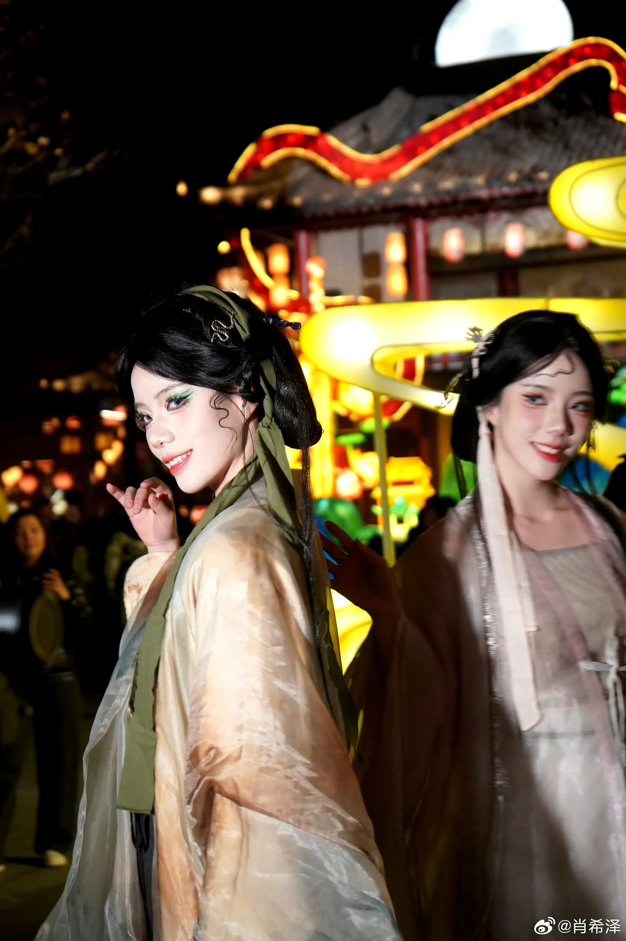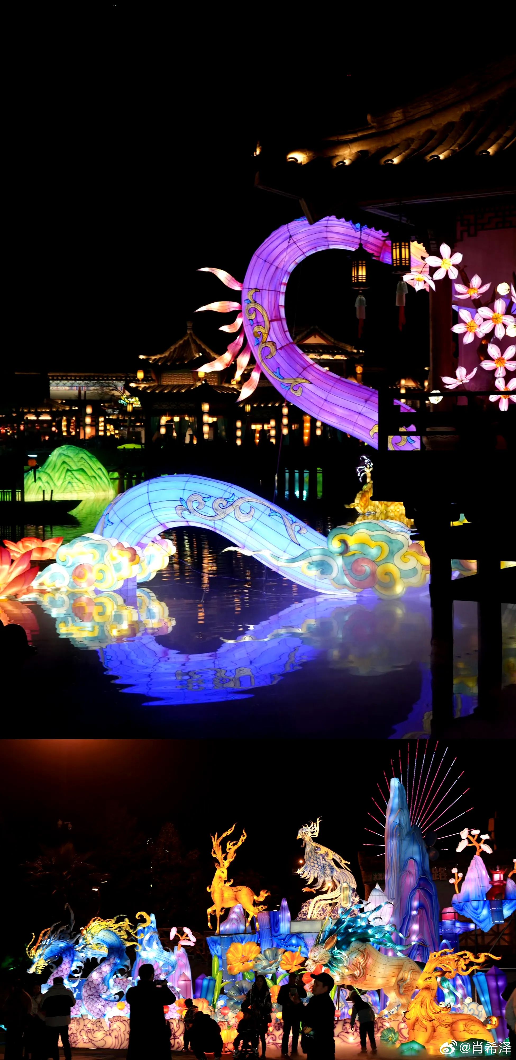 踏入清明上河图景区,“宋梦浮光・缘起华灯”的盛景便映入眼帘。各式花灯巧妙地布置在各处,宋韵风华尽显。这里不仅能让你尽情逛灯会、赏花灯,感受传统节日的热闹氛围,还有众多热门影视剧现场还原剧情。樊楼摇身一变成为《梦华录》里的永安楼,《庆余年 2》的场景也高度还原,随手一拍就是古风大片。更令人惊喜的是,现场有 200 + NPC 与你互动,让你沉浸式体验这璀璨灯会,仿佛穿越回北宋盛世。