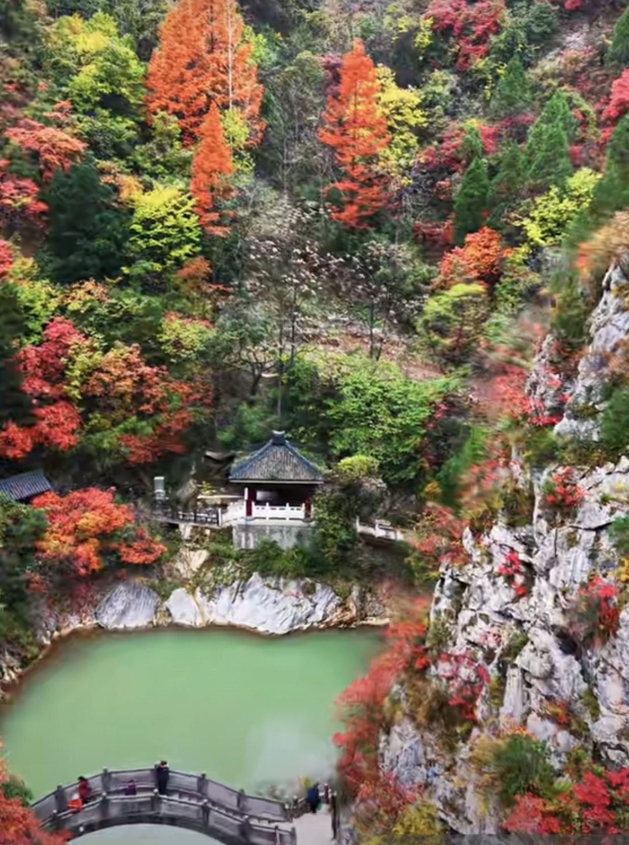 秋日的西狭,最惊艳的莫过于漫山红叶。经秋霜点染,峡谷两岸的林木褪去翠绿,换上赤橙黄紫的盛装。近观,枫叶似火、黄栌如霞,叶片在阳光下泛着剔透光泽;远眺,层林叠叠如打翻的调色盘,与蓝天碧水相映,成就“满山遍野映山红”的壮阔画卷。溪水潺潺穿峡而过,清冽的水流倒映着两岸红叶,动静之间,满是诗意,引得游人驻足拍照,沉醉于这份浓烈而纯粹的秋意。