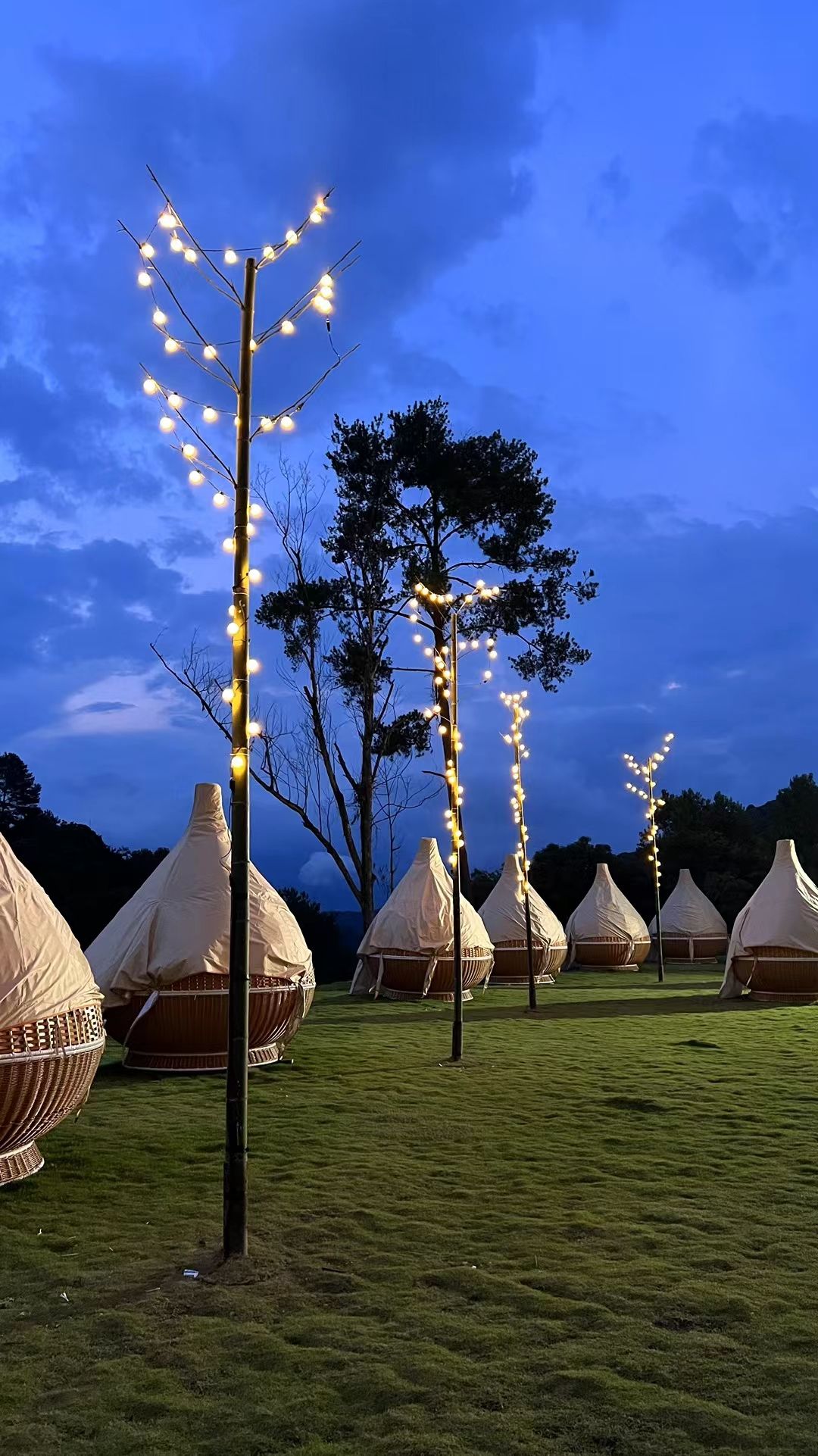 住宿体验,独特外观与环境:鸟巢营地的建筑外观新颖独特,如同一个个鸟巢坐落于山林之间。四周被绿林草坪环抱,空气清新,在这里可以聆听鸟语蛙声,感受大自然的美好,配套设施与活动