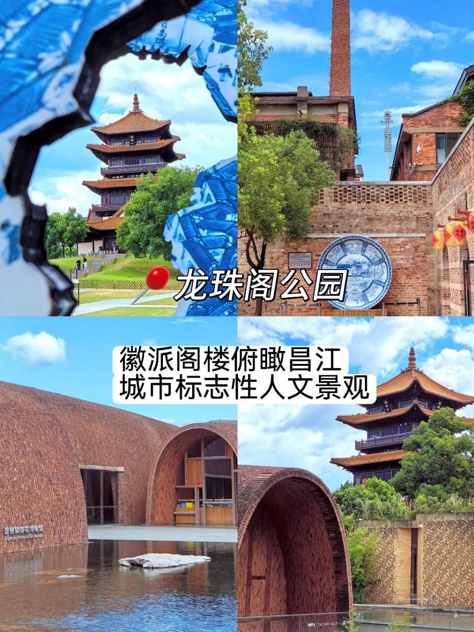 公园亮点:徽派阁楼俯瞰昌江,城市标志性人文景观