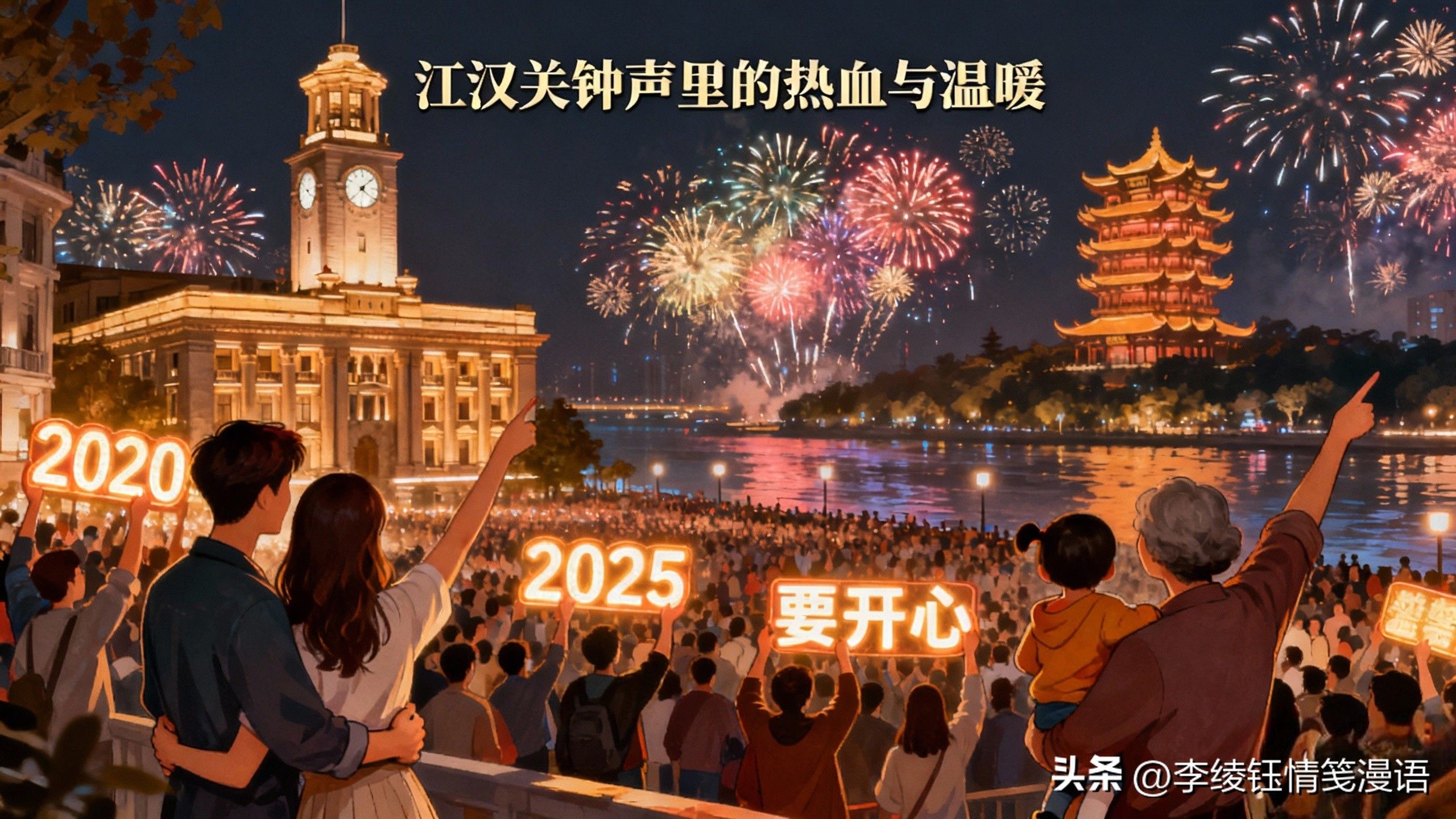 最让人期待的,莫过于江汉关前的跨年时刻。离零点还有两三个小时,沿江大道上就已经挤满了人,有人举着写着“2025要开心”的灯牌,有人和朋友手挽手聊着这一年的趣事,还有爸妈抱着孩子,指着江汉关大楼上的时钟数着“还有一小时就跨年啦”。风里带着江滩的湿润,却一点都挡不住大家的热情,随着时间慢慢靠近零点,人群里的欢呼声越来越响,当江汉关的钟声第一次敲响,灯光瞬间铺满大楼,江面上还升起了绚烂的烟花,有人激动地和身边人拥抱,有人对着江面大喊“明年要更好”,那一瞬间,所有的疲惫都被抛在脑后,只剩下和这座城一起迎接新年的热血与温暖。