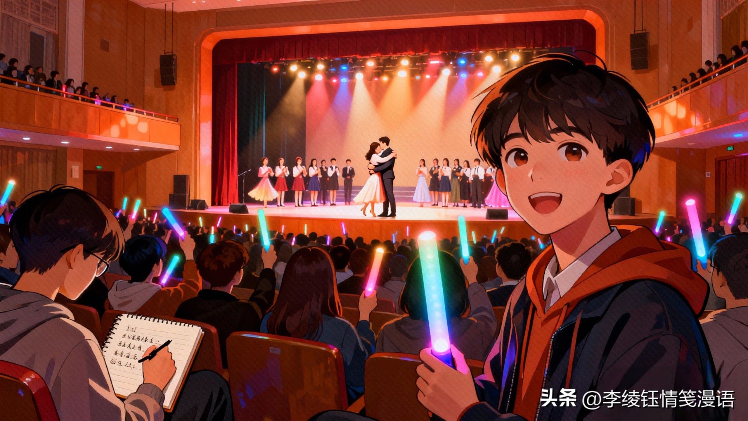 高校里的元旦晚会,更是藏着年轻人独有的鲜活。走进武大的礼堂,舞台上的灯光闪着青春的光芒,学生们穿着精心准备的服装,唱歌、跳舞、演小品,每一个节目都赢得台下阵阵掌声。有社团带来的合唱,歌词里满是对校园的热爱;有情侣一起表演的双人舞,结束时的一个拥抱,让台下瞬间响起起哄的笑声;还有毕业生特意回来参加晚会,在节目结束后对着镜头说“明年要带着更好的自己回来看看”。台下的学生们举着荧光棒,跟着音乐轻轻摇晃,有人在笔记本上写下新年计划,有人和室友约定“明年要一起去江汉关跨年”,年轻的脸庞上,满是对未来的期待与憧憬。