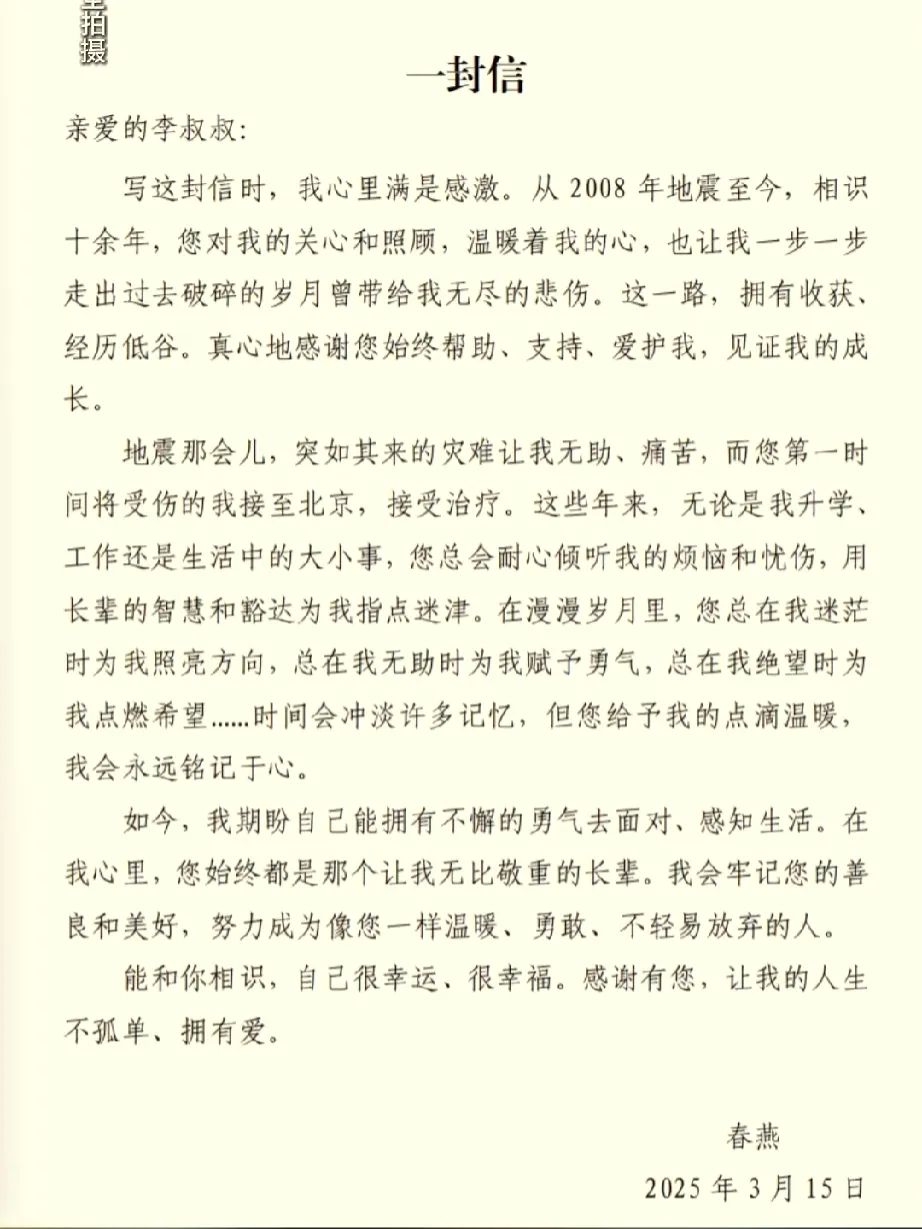 好久没见春燕了,李亚鹏这次临时决定去看看她,两人好不容易相见春燕哭成了泪人,她紧紧抱着李亚鹏,非常感恩李亚鹏的帮助和关爱,来自非亲非故陌生人持续的爱和温暖,真的会温暖一辈子。李亚鹏对待春燕真的和亲生女儿一般,紧紧地拥抱,眼神温柔,手牵手,还逗春燕开心,春燕笑得开心极了,感觉因为李亚鹏的到来,春燕的世界都被点亮了。