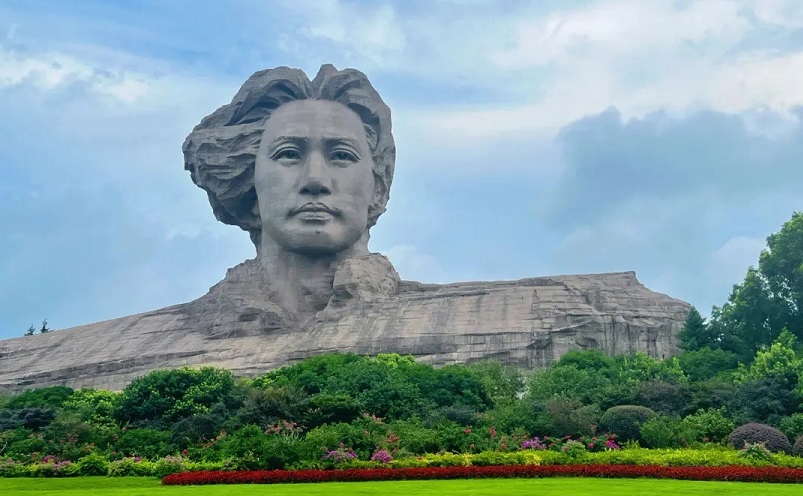 其中,最突出的当属毛泽东青年艺术雕塑,高32米、长83米、宽41米,基座3500平方米,是橘子洲头最大的单体景观,远远的就能看见。整个雕塑设计精美,工艺精湛,突出表现了青年毛泽东风华正茂的形象,眼睛炯炯有神,面貌朝气蓬勃,充满活力与希望。