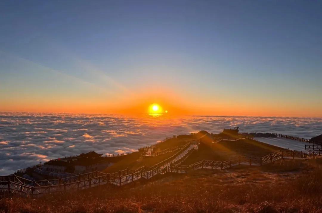 到了第二天,直接就可以看日出了,如果跟女朋友在一起,是不是特别浪漫?所以去的时候要选择好的天气,既能看到日出,又不热最好,我当时去的时候就是天气不好,山上算是雾气,全身都湿掉了。当时回去的时候还感冒了,所以如果冬天去的话特别地冷,最好初夏的时候去,那时既不冷也不热,还能看日出。
