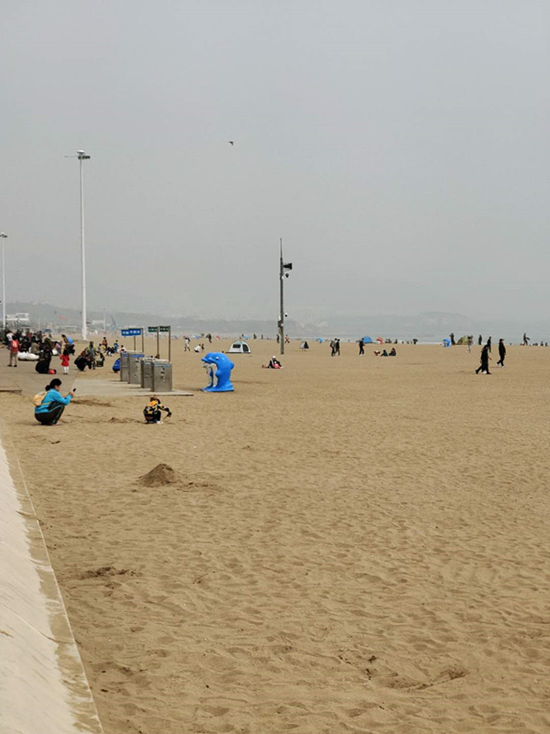 如果还有体力的话,可以继续顺着滨海步行道走下去,一直可以走到石老人海水浴场。不过从小麦岛公园到石老人海水浴场有六公里多的路程,加上前面的路程,加起来有十多公里。