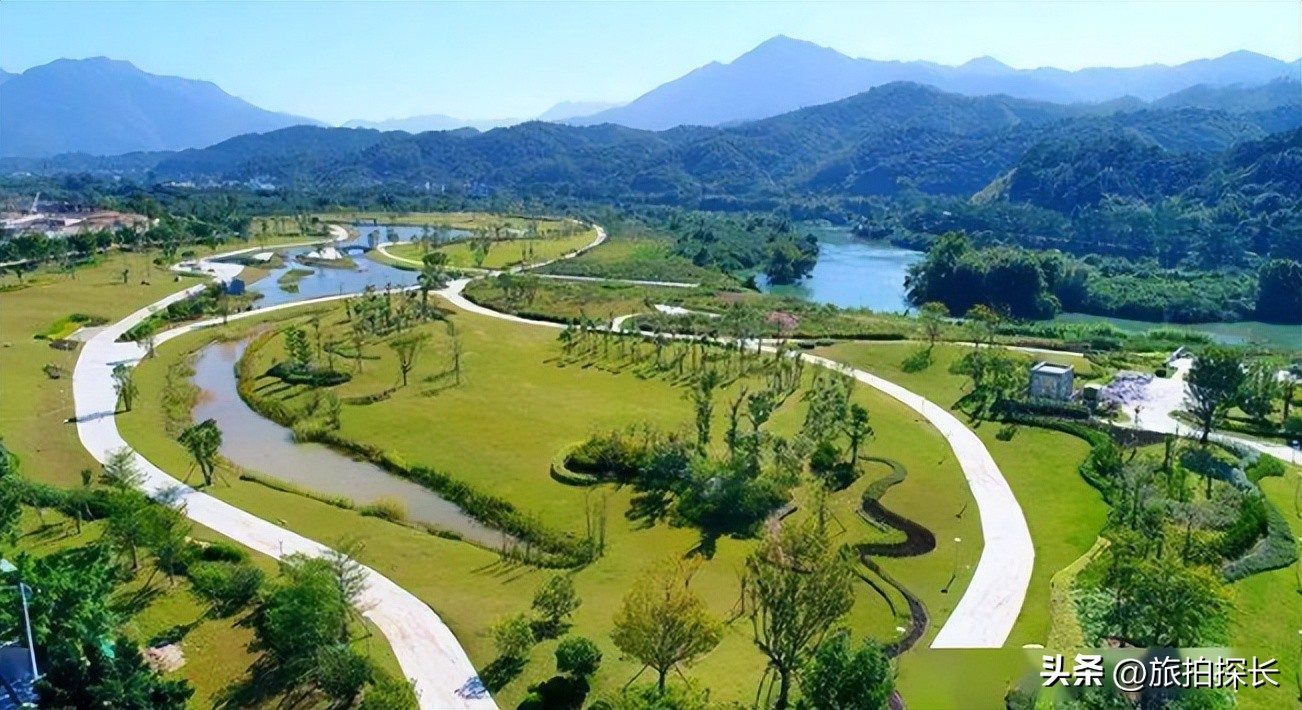 荔枝球公园,与从都国际庄园、米埗小镇、从都湿地公园仅一河之隔,河水如玉带一般缓缓流过,串起三个景点。周边的山峦、树木、山村、田园融为一体,使这里成为一个天然的乐园。