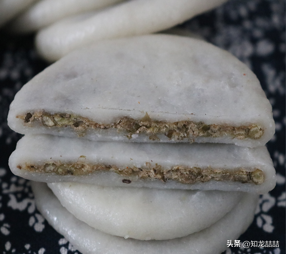 以糯米、绿豆为主要原料,先蒸后捣烂,然后切成小汤团,然后揉成薄片,裹上熟透的绿豆,做成椭圆的半成品,用油煎。刚出炉的绿豆糕,颜色金黄,表面有气泡,入口甘甜,回味无穷,是早餐的上好选择。