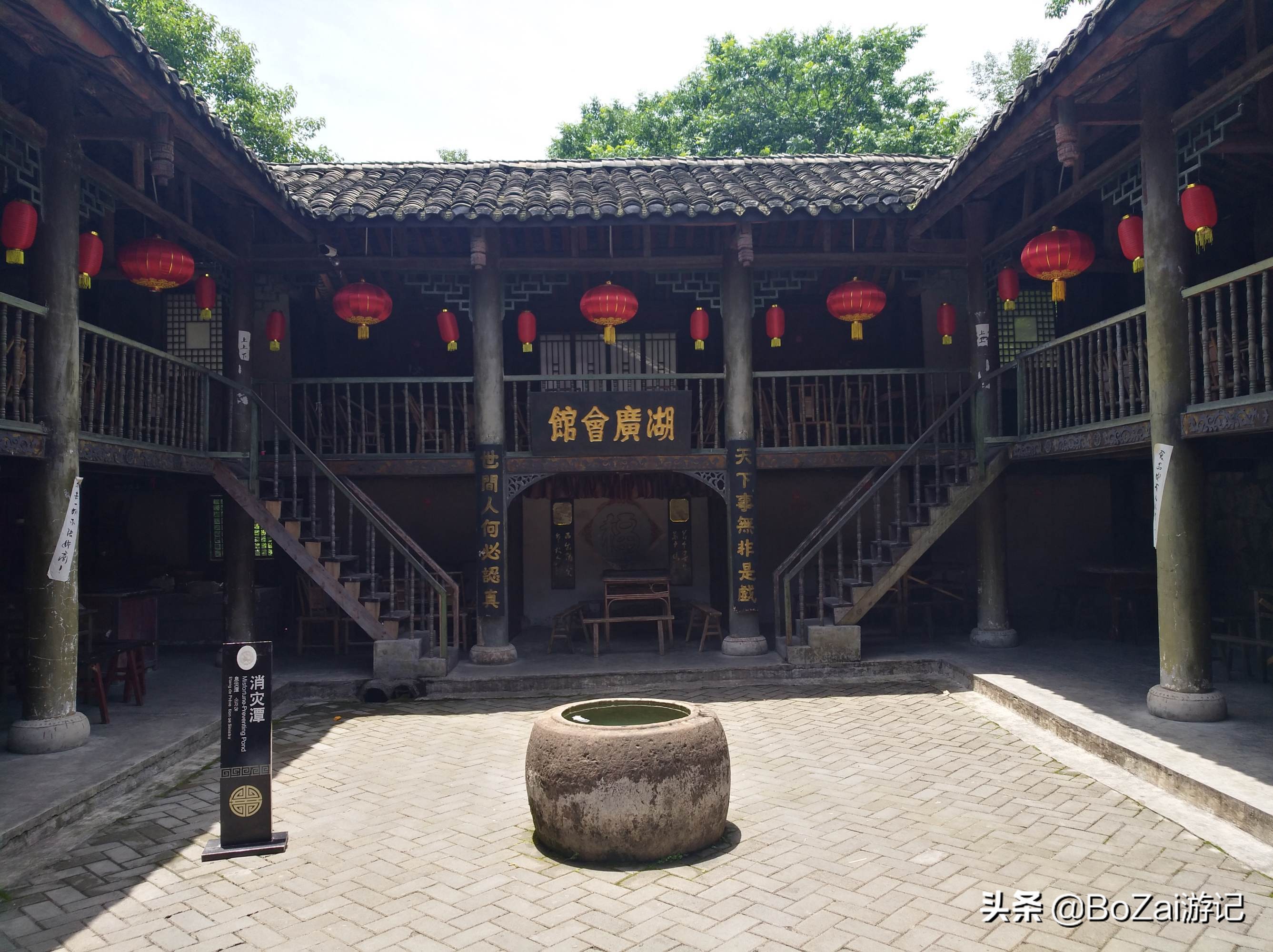郪江古镇有一大特色,就是遍地都可以看到百年的老榕树,最有特点的就是“波平浪静”庙前子的两棵,据说那两棵树是同时种下的,为了美观,种树的人在两棵树的周围用石头砌了一圈矮墙,经过近百年的生长,现在它们一棵是“树包石”,一棵却是“石包树”,让游者看后不得不感叹大自然造物之神奇。在古街的街尾有一处名为“合欢树”的景点,起初闻其名的时候不解其义,见后才知道原来是两棵古树长成了一棵树。当地的百姓认为树也是通人性的,说它们也有感情,还编出了许多浪漫的爱情故事。