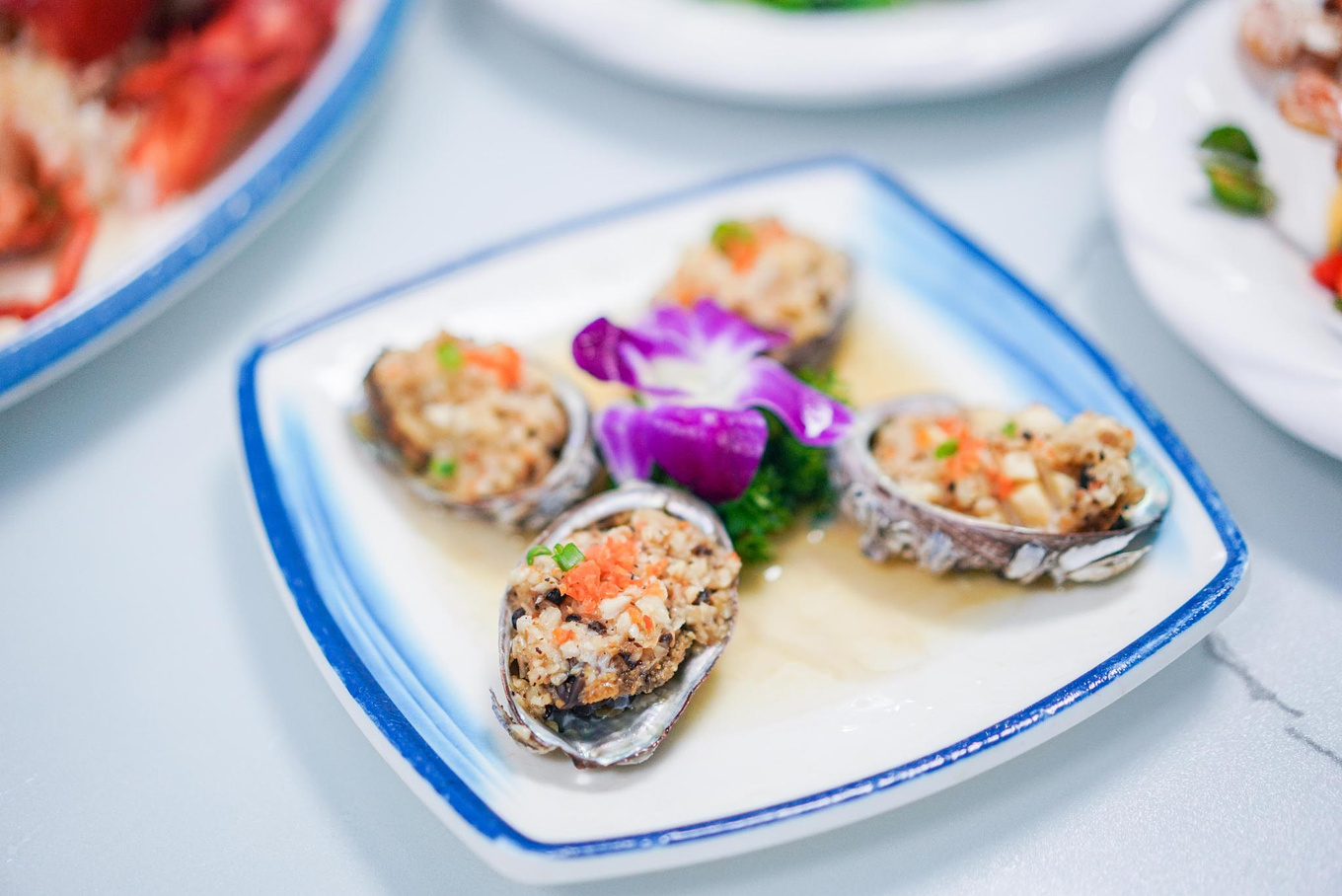 蒜蓉豆豉蒸鲍鱼,非常有创意的鲍鱼做法,味道很惊艳,鲍鱼个头很大,吃起来的肉质很细嫩,带着酱汁特有的蒜蓉和豆豉的辛香,味道很赞!