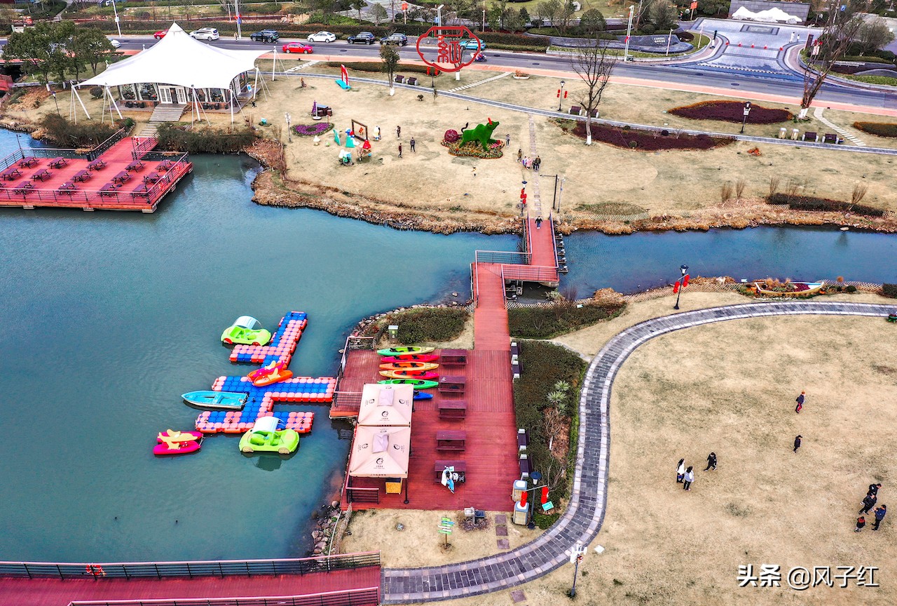 水上帐篷营地也是东钱湖一处很多游客会打卡的地方,位于韩岭和湖心堤之间。其实可以从湖心堤朝着水上帐篷营地方向徒步,大约走不到2公里,就可以抵达。这里有一大片绿地和湖上栈道,很多家庭在这里放风筝、游湖、下午茶,不过东钱湖招牌旁的可爱的小牛也吸引了很多人来拍照打卡,别有情趣。