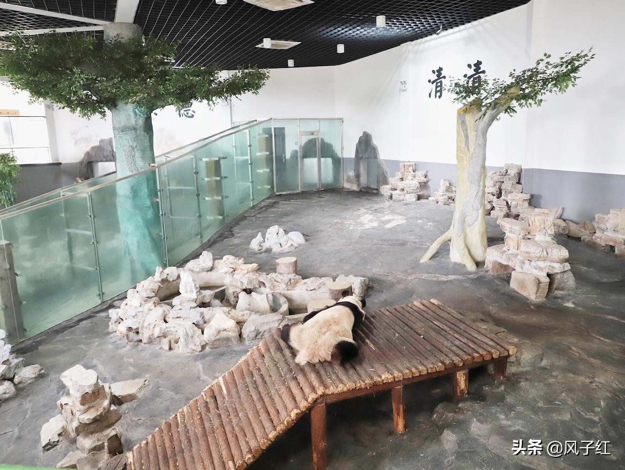 看完鸟类中的国宝朱鹮,从湿地公园出来不远处就是陆地上的国宝大熊猫居住的地方了,这里一共有两只大熊猫,它们来自四川的雅安碧峰峡大熊猫保护基地,2013年1月22日入住海波125米的防风山熊猫馆,取名德德清清,德德7岁,清清11岁,它们是同父异母的亲姐弟。