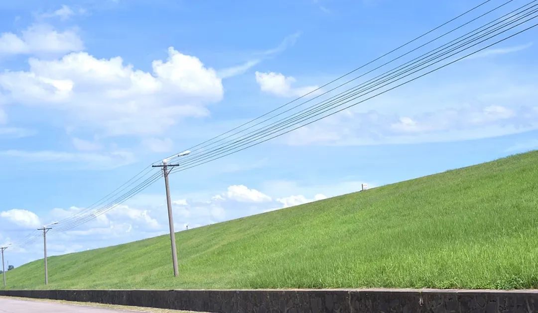堤岸、电线杆和草地,相互勾勒出一方自在小天地,浪漫因子爆发。