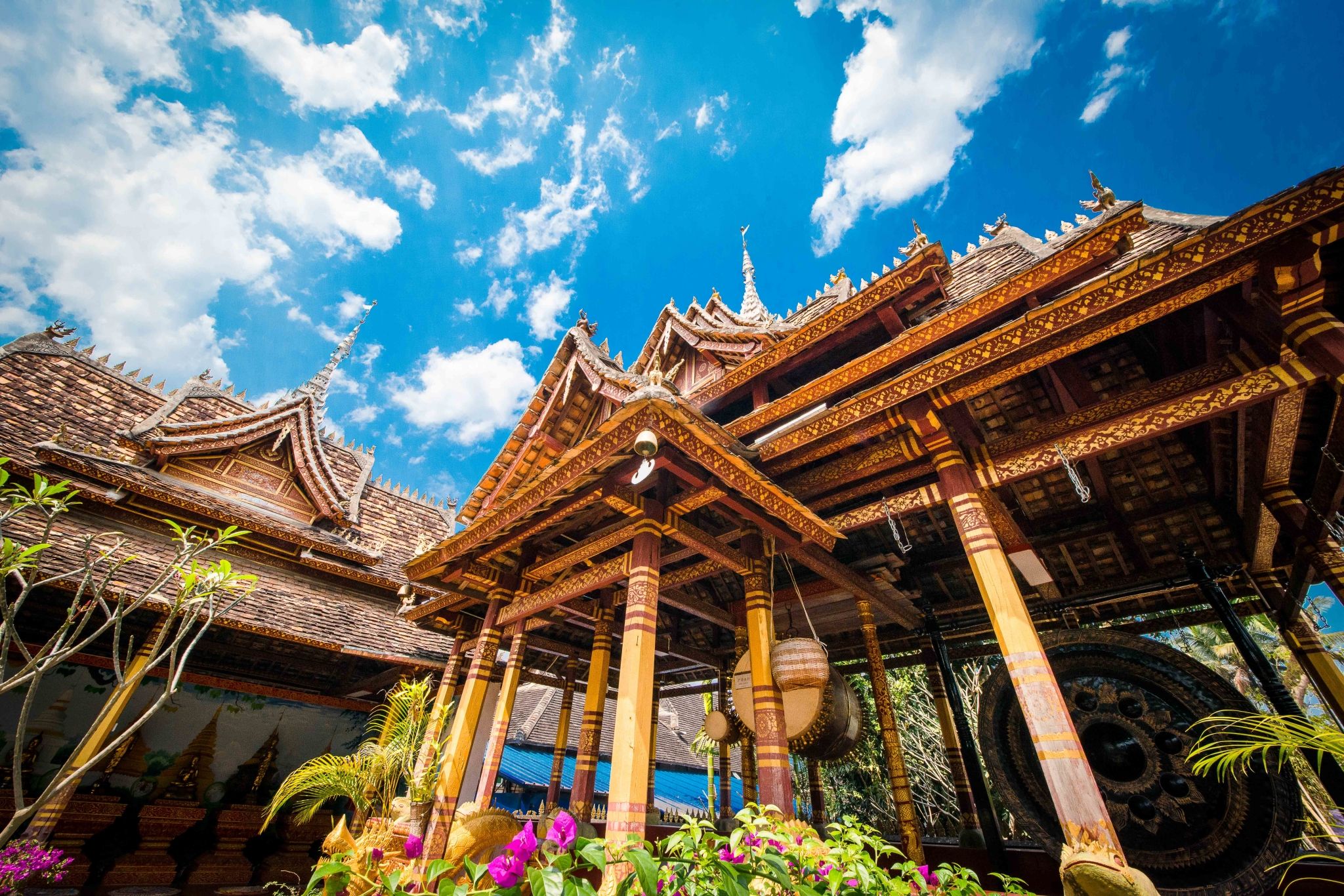 大金塔,塔身高六十六点六米,寓意着一江连六国(澜沧江顺流而下可到达老挝、缅甸、泰国、柬埔寨、越南等东南亚国家)。