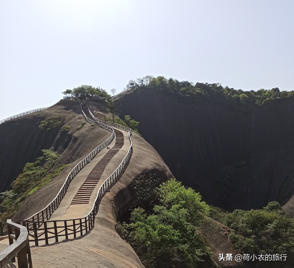 经过修建的龙脊山,目前门票是80元,沿着登天云梯来到龙脊峡谷,修了栈道的龙脊山宛如一条巨大的盘龙,从山脊往下看是陡峭的龙脊峡谷,就像一副徐徐展开的山湖林画卷,红颜碧水,美不胜收,让人不禁感叹大自然巧夺天工的创造力。