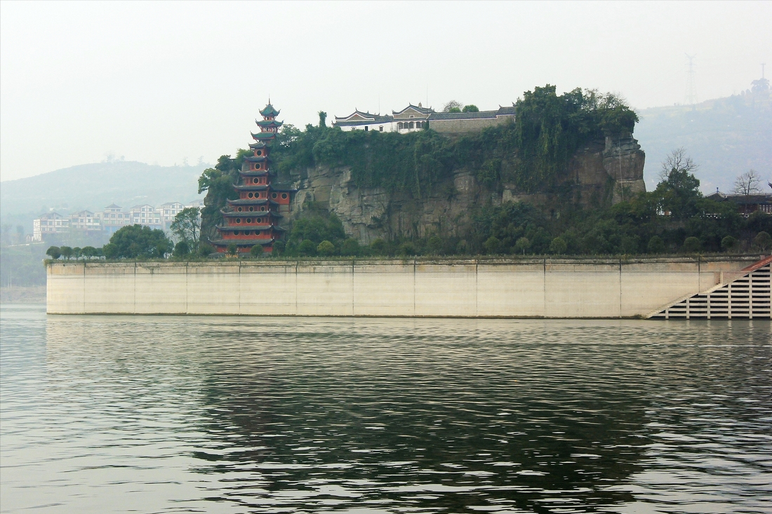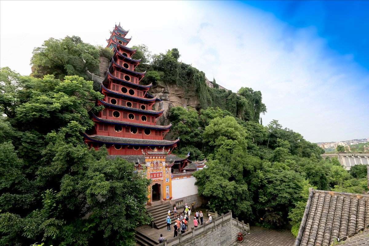 石宝寨原本这是一座拔地而起的孤峰,古人借助石壁上的铁索在山顶修建了一座寺庙,在明朝中期,当地的贤达人士又聘请了能工巧匠修建了一座九层高的阁楼,取代了铁索,避免了相和游人攀爬铁索才能到达山顶的苦楚。在1985年又修建了三层塔楼,目前为12层,现在这里是游客眺望长江的小蓬莱。