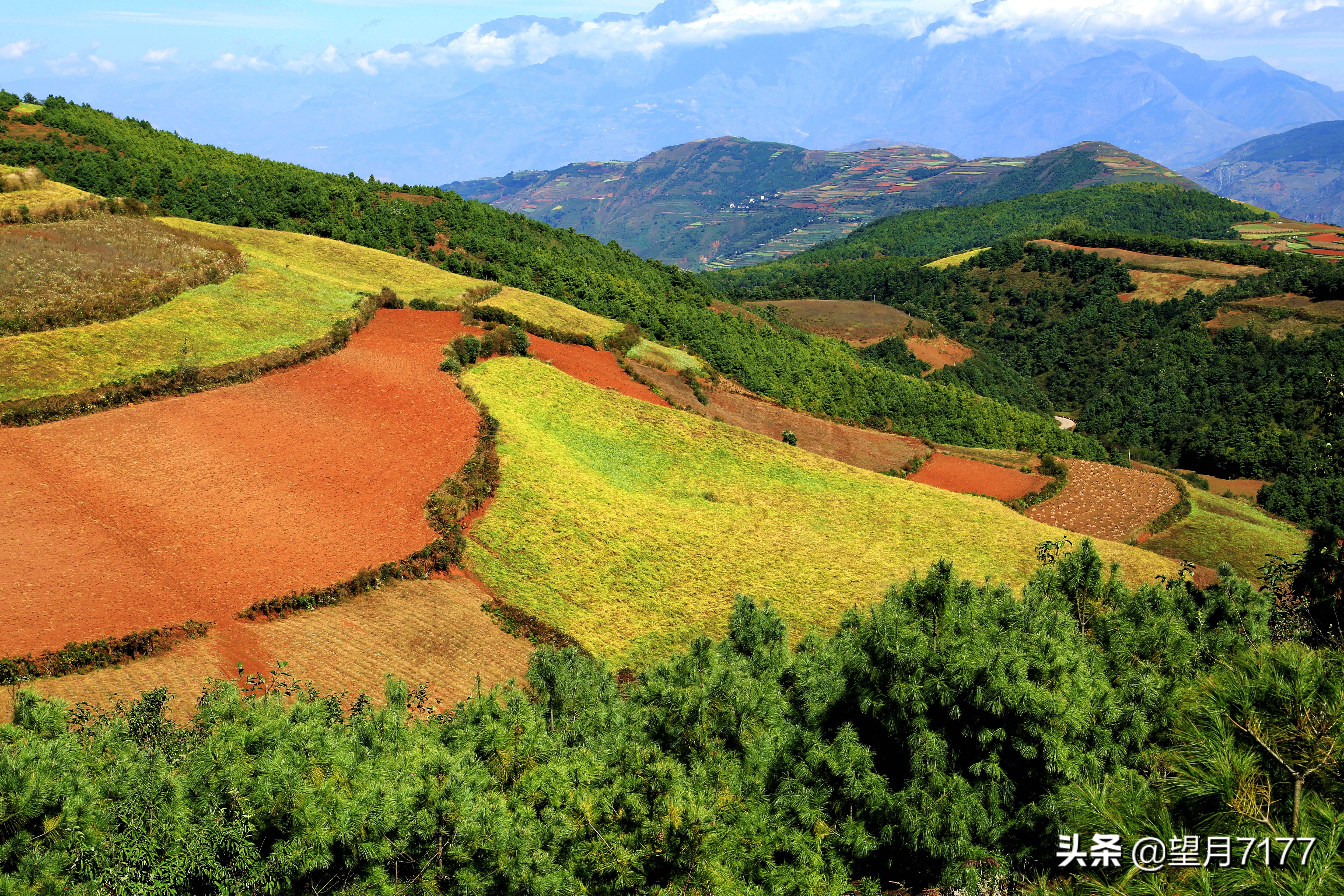 那山、那树、那土、那田在雨水的滋润下,在蓝天白云的映衬下,色泽如油彩般浓厚。