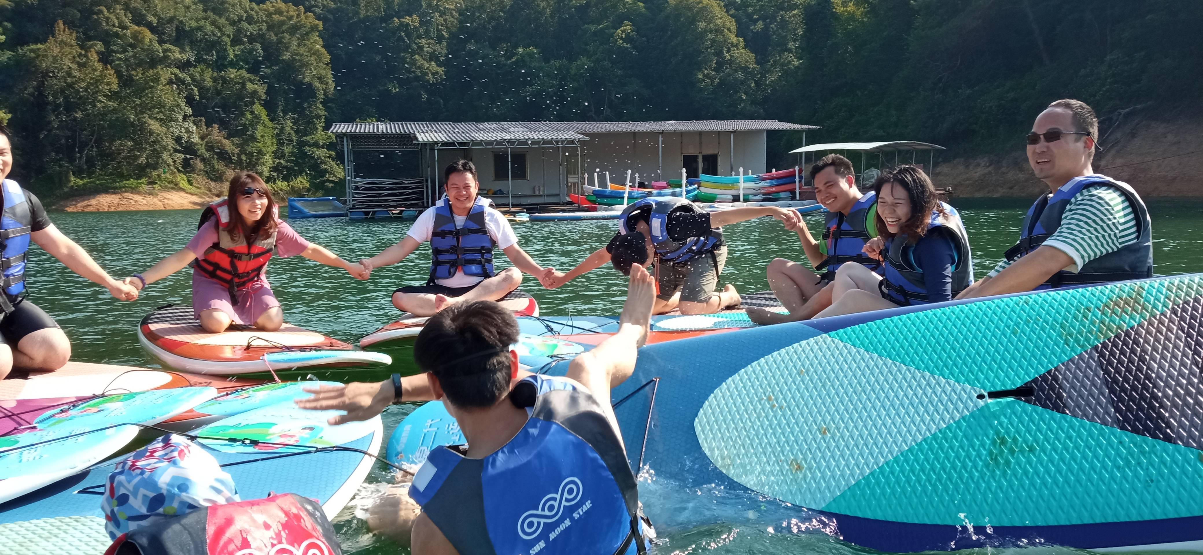 桨板体验在犹江的南湖国际垂钓基地进行,由桨板俱乐部的冠军教练细心指导下,这是全新的运动游旅文化体验,桨板基本动作很快上手,特色是在水面进行团建游戏,全程充满欢笑,教练协助拍照摄影,并特别的在夕阳时光划着桨板,尤富诗意。