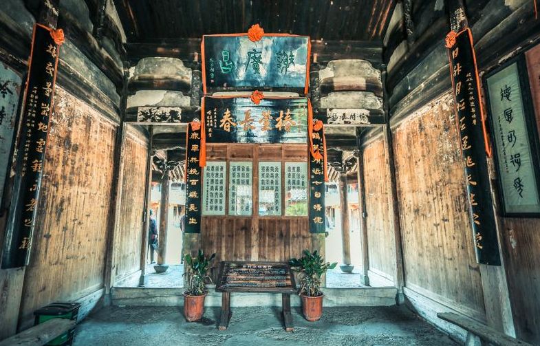这其中,最具代表性的是村中的祠堂建筑。据说,极盛时镇中有各类祠堂十八处,大多雕梁画栋,工艺精湛,其中最著名的是大公堂、丞相祠堂等。