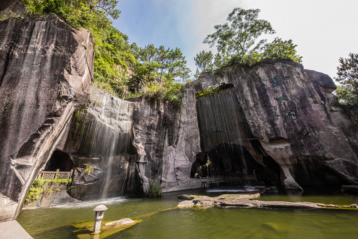 洞内藏有一座天池,泉水沿着石壁飞流直下,形成数道小飞瀑,亦动亦静,为幽静的洞穴凭添几许活力。此时洞中淅淅沥沥的水滴,滴答滴答洒向水面,宛若大珠小珠落玉盘般美丽, 相互碰撞,营造出浓浓的诗意。