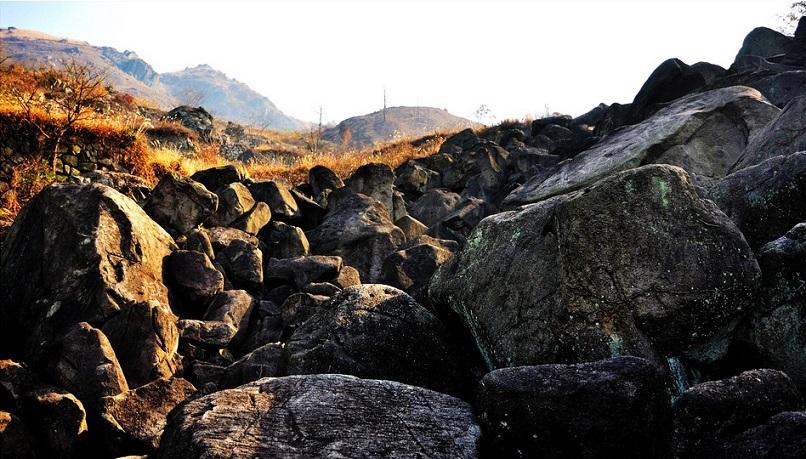 覆卮山最著名的是“冰川石浪”这种奇景,巨石像奔腾的激流,从山顶滚滚而下,气势磅礴,经过专家考证,确认为第四纪留下的冰川遗迹,距今已有290万年至350万年之间。