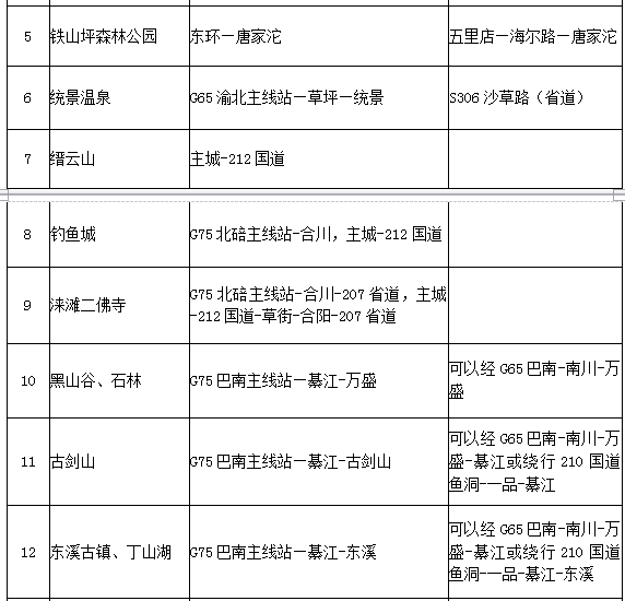 主城前往我市各景区的33条自驾线路