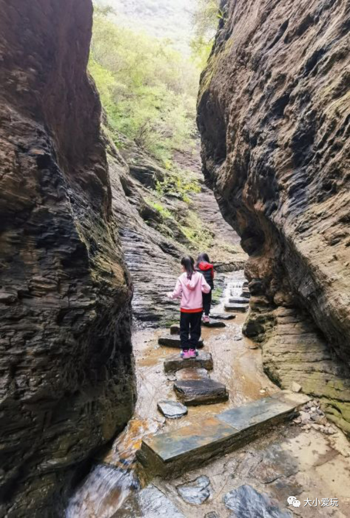 顺着裂开的峡谷小道蜿蜒前行,时而宽阔,时而狭长,移步换景,每过一个弯都会有惊喜,而且路两侧绿树成荫,植被茂密,脚下溪水流淌自带冷气。