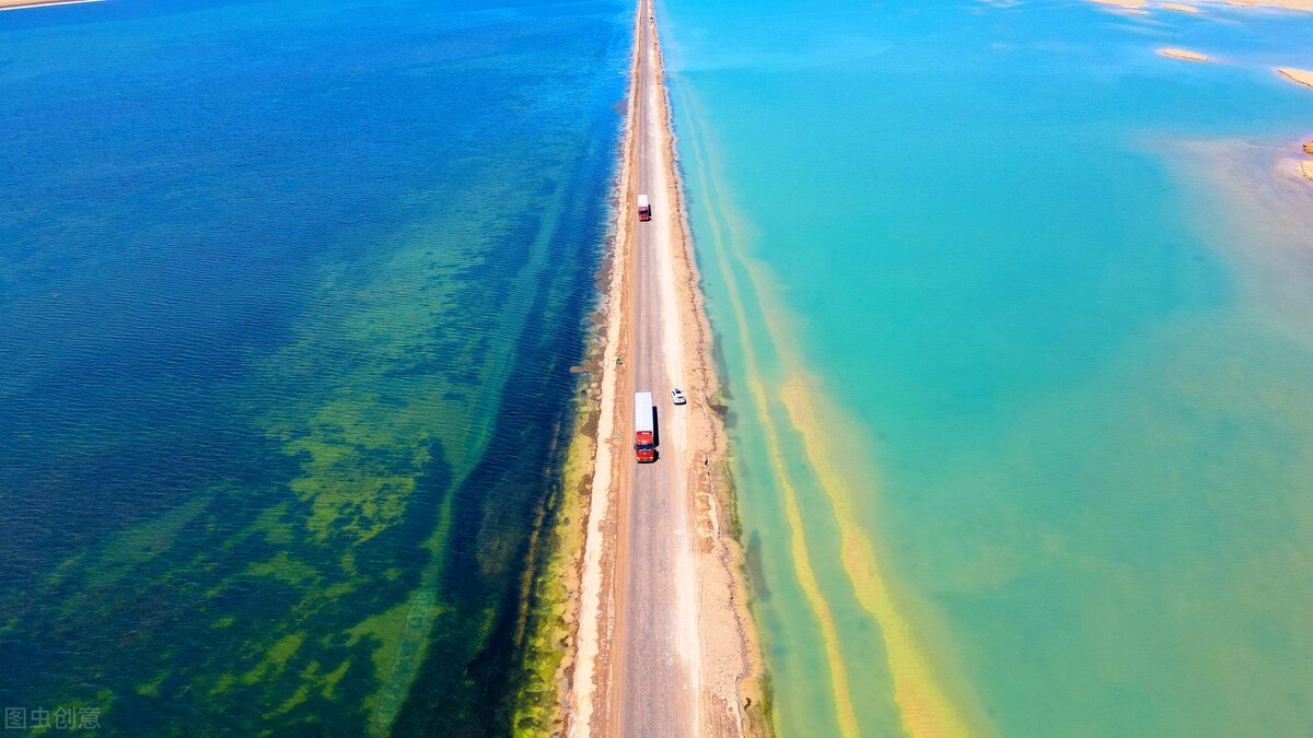 国道G315穿湖而过,路两侧湖水一边为绿色,一边为蓝色,形成了瑰丽无比的双湖奇观,被游人称为“鸳鸯湖”、“情侣湖”。