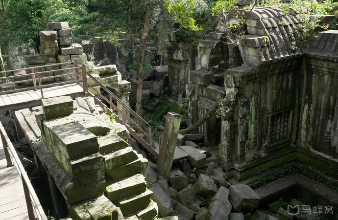 崩密列意为“荷花池”,是一座印度教寺庙,也是吴哥古迹建筑群中最神秘、也是最难前往的寺庙之一。寺庙坍塌严重,被树木掩映,无路可走,寺庙周围原本是一条很宽的护城河,如今早已干涸。由于保护不力,这里的很多雕塑已被盗走,原始而破败的氛围造就了它的独特之处,吸引了世界各地的摄影爱好者。主殿旁有一些木栈道,是拍摄电影《虎兄虎弟》时修建的,可以登上最高的石塔旁,从高处一窥主殿大致的格局。